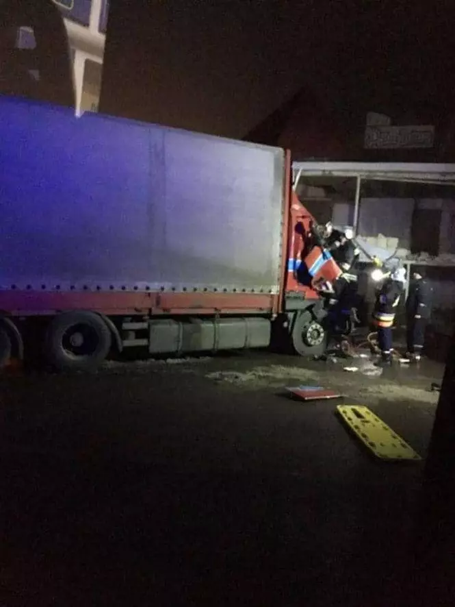 Щоб уникнути зіткнення, водій тягача «DAF» інстинктивно повернув праворуч та в’їхав в приміщення непрацюючого кафе.
