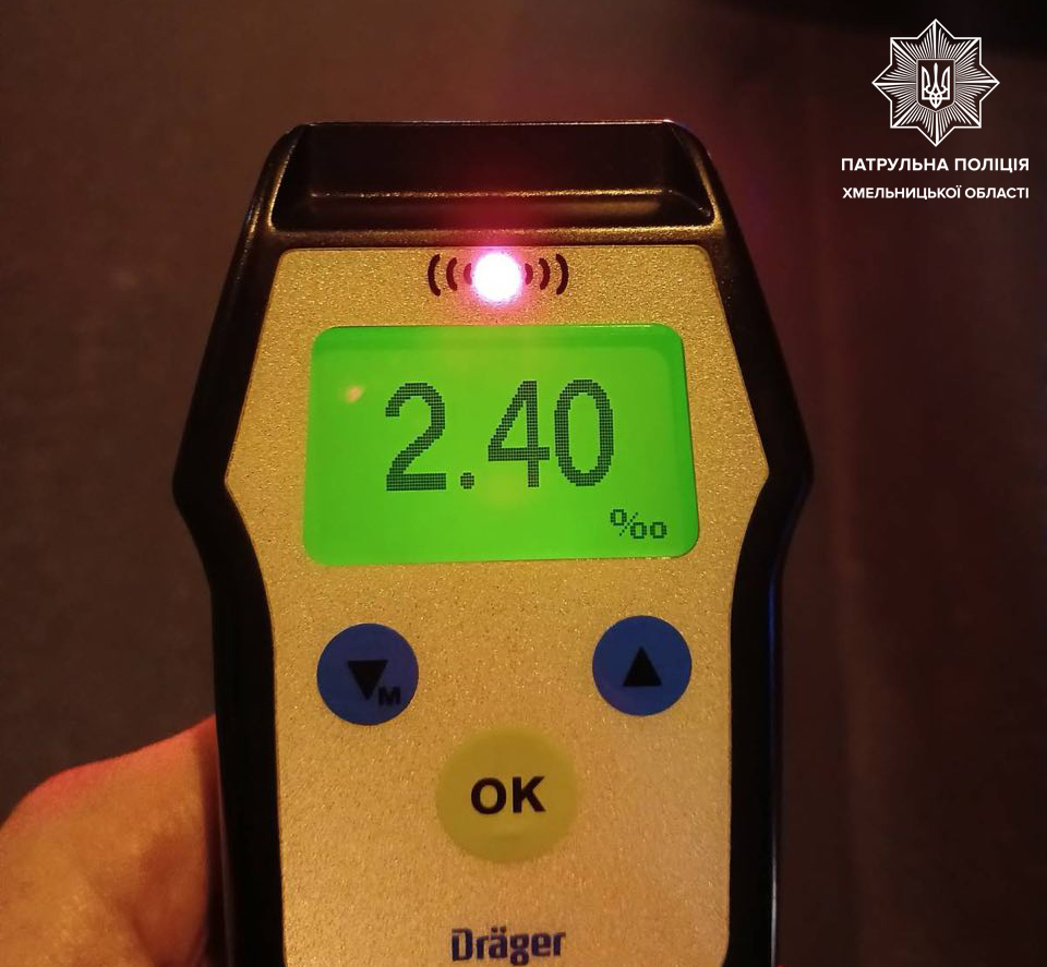 Інспектори запропонували йому подути у “Драгер”, аби визначити стан сп’яніння. Результат — 2,40 проміле, що у 12 разів перевищує допустиму норму.