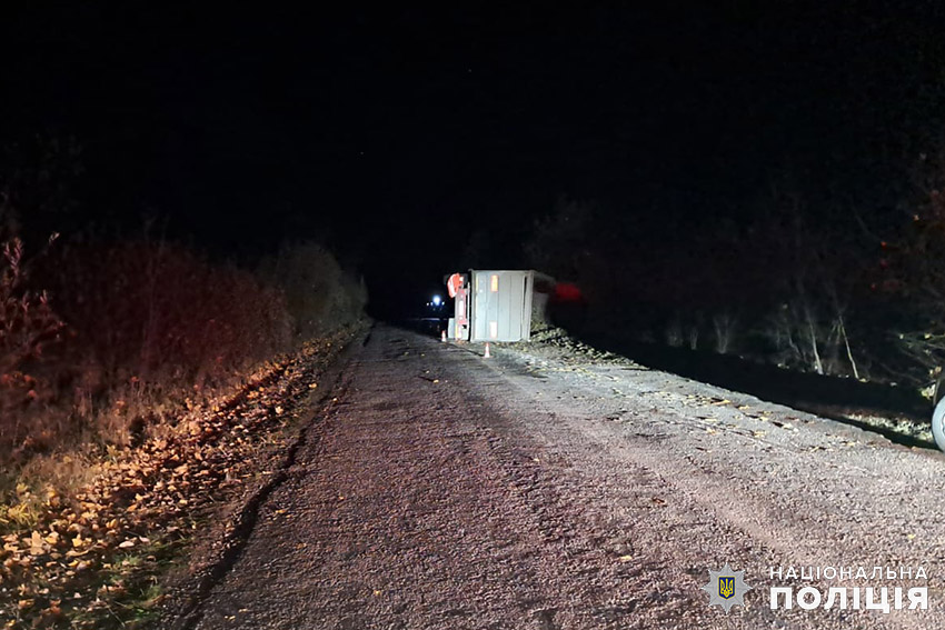 Інший інцидент відбувся того ж дня близько 16:14 години на шляху «Кам'янка — Плужне — Ізяслав — Шепетівка» неподалік села Припутні, що в Ізяславській тергромаді. 39-річний житель Славути керував вантажівкою «Renault Magnum» з напівпричепом. На заокругленій ділянці дороги чоловік не впорався з керуванням – і його транспорт перекинувся. У результаті аварії водій вантажівки травмувався. Медики його доправили до травматології.