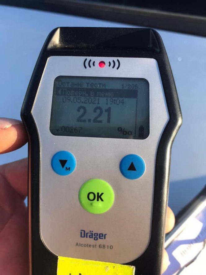 На водія склали протокол про адміністративне правопорушення за частиною 1 статті 130 КУпАП (Керування транспортними засобами або суднами особами, які перебувають у стані алкогольного, наркотичного чи іншого сп'яніння або під впливом лікарських препаратів, що знижують їх увагу та швидкість реакції), а також протокол за статтею 139 КУпАП (Пошкодження автомобільних доріг, вулиць, дорожніх споруд, залізничних переїздів і технічних засобів регулювання дорожнього руху, створення перешкод для руху та невжиття необхідних заходів щодо їх усунення, яке призвело до пошкодження транспортного засобу). Рішення про покарання водія прийме суд.