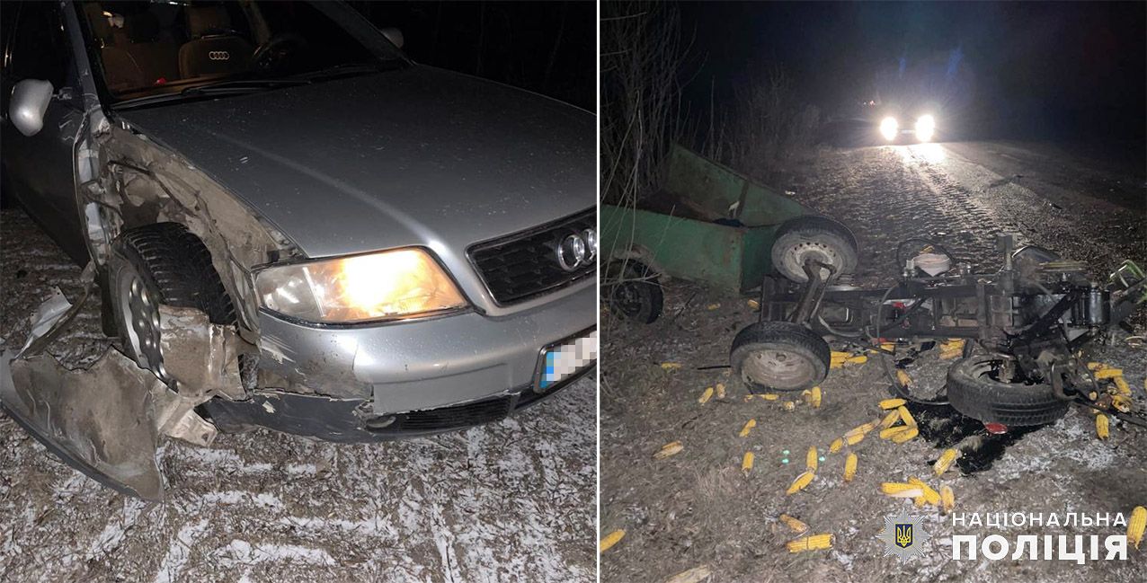 Це трапилось 29 січня близько 17.30. З власних джерел vsim.ua стало відомо, що 60-річний мешканець села Юхимівці з 53-річною дружиною поїхали мотоблоком по кукурудзу. Дорогою назад в мотоблок врізався автомобіль «Аudі А6». За кермом був 42-річний житель сусіднього села Сергіївка.