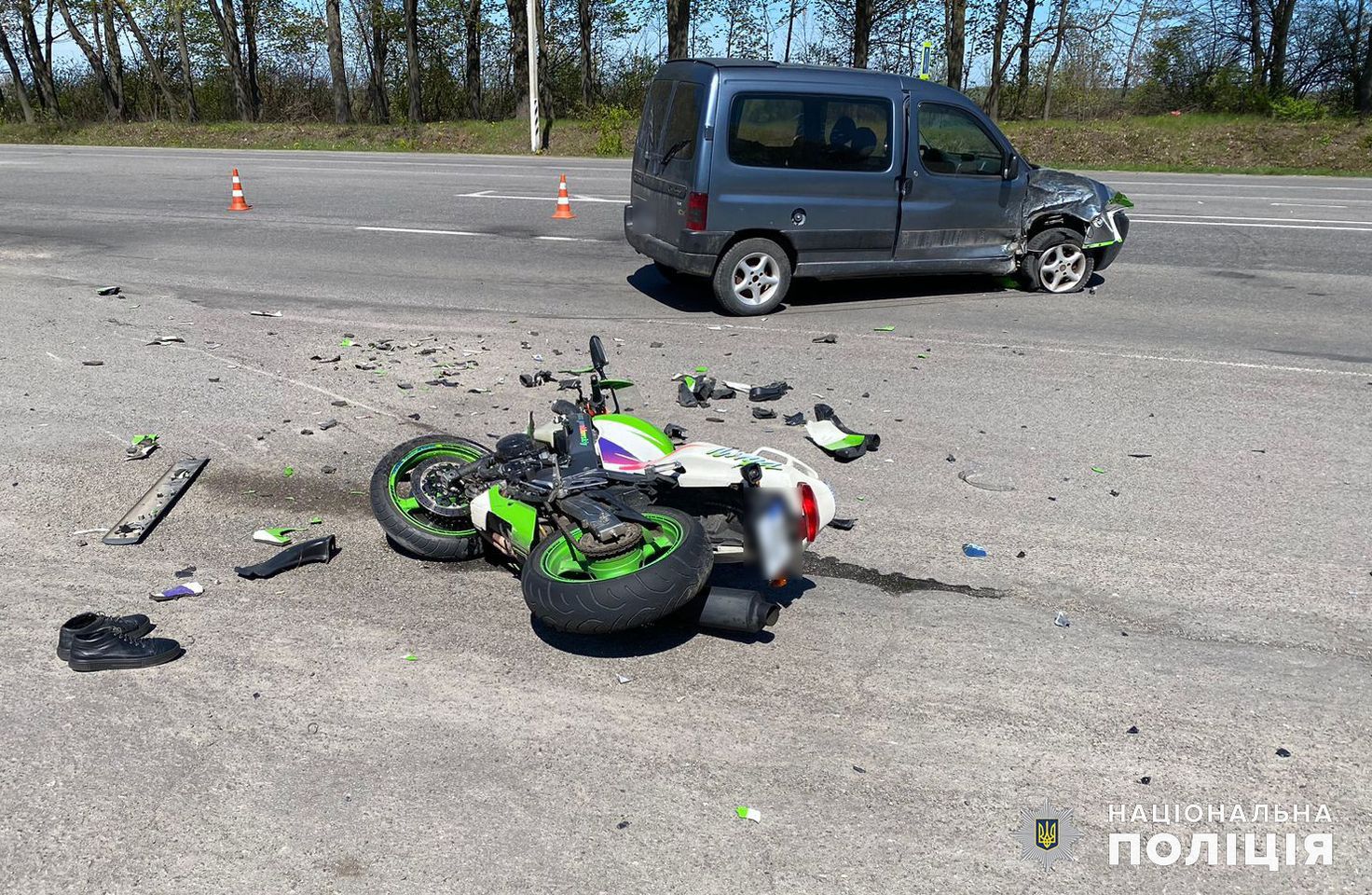 У поліції повідомляють, що близько 10:25 години «Citroen Berlingo» зіткнувся з мотоциклом «Kawasaki». За кермом двоколісного перебував 24-річний житель села Мацьківці.