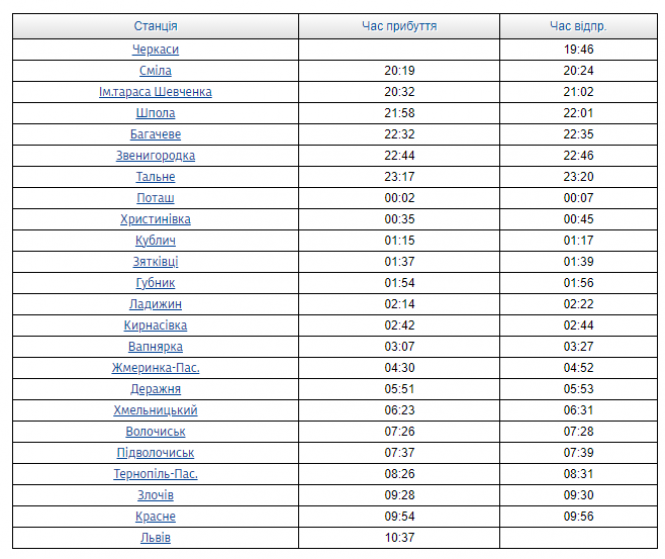 "Відправлення з Черкас о 19:46, прибуття до Львова о 10:37; відправлення зі Львова з 2 липня о 14:30, прибуття о 06:35. За "докарантинним" розкладом поїзд прибував до Черкас близько четвертої ранку", - йдеться у повідомленні.