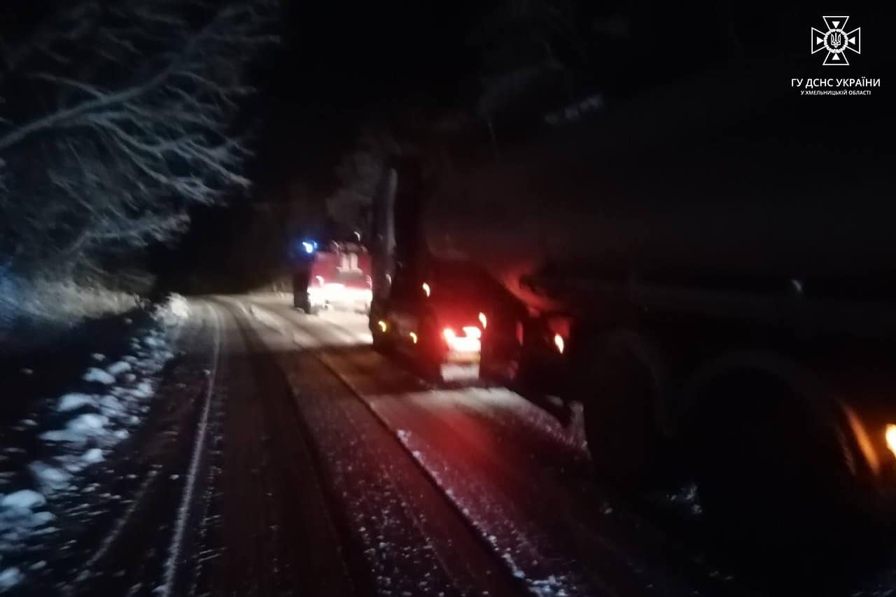 Надзвичайники витягнули з кюветів 2 вантажівки на Хмельниччині (ФОТО)
