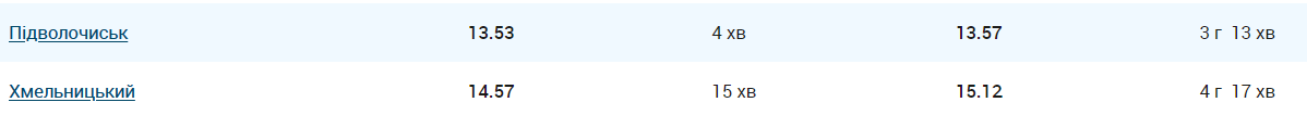 Час затримки становить від 46 хвилин до майже 3-х годин.
