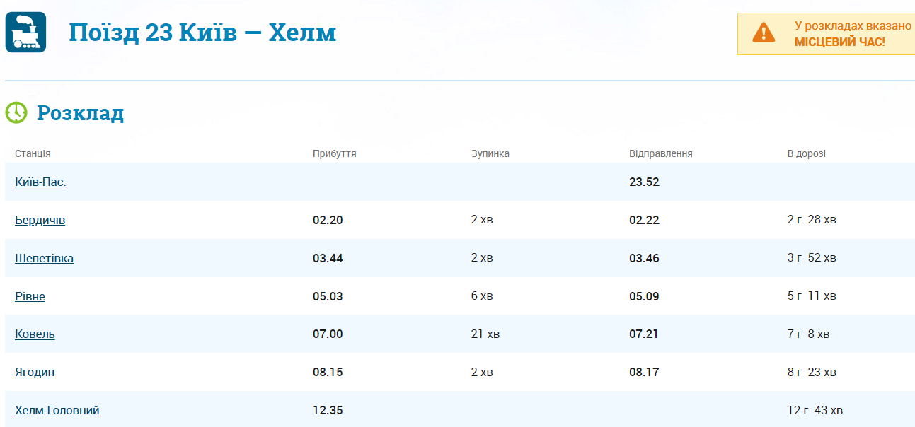 №23 Київ — Хелм затримується на 1 годину 23 хвилини. Він зупиняється на таких станціях: