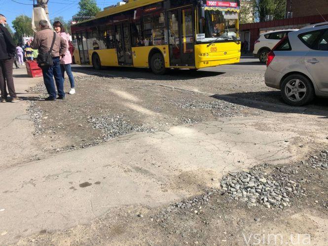 Наприкінці лютого цього року працівники «Хмельницькводоканалу» почали ремонт каналізаційного колектора біля міської лікарні. Через це на вулиці Шевченка обмежили рух транспорту. Завершивши ремонт, комунальники засипали яму на місці дороги та тротуару щебенем.