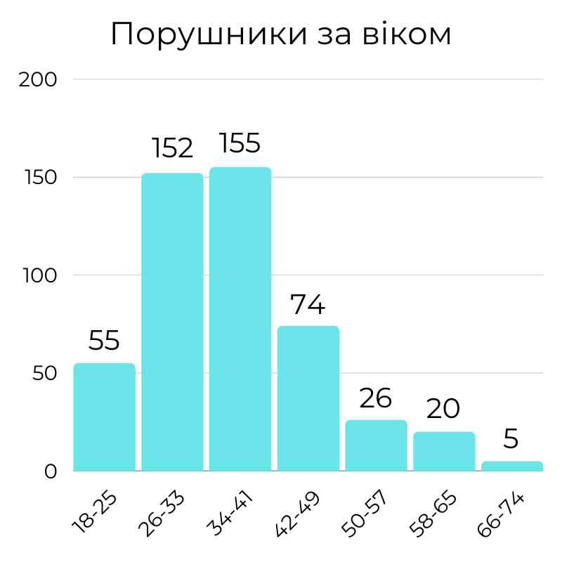 приблизно дві третини порушників мають вік від 26 до 41 року