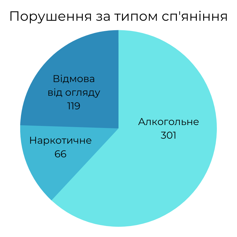 Загалом у період від 1 січня до 11 вересня спіймали 487 нетверезих водіїв. Зупинимося на кількох основних фактах, які з’ясувалися за результатами аналізу даних патрульних: