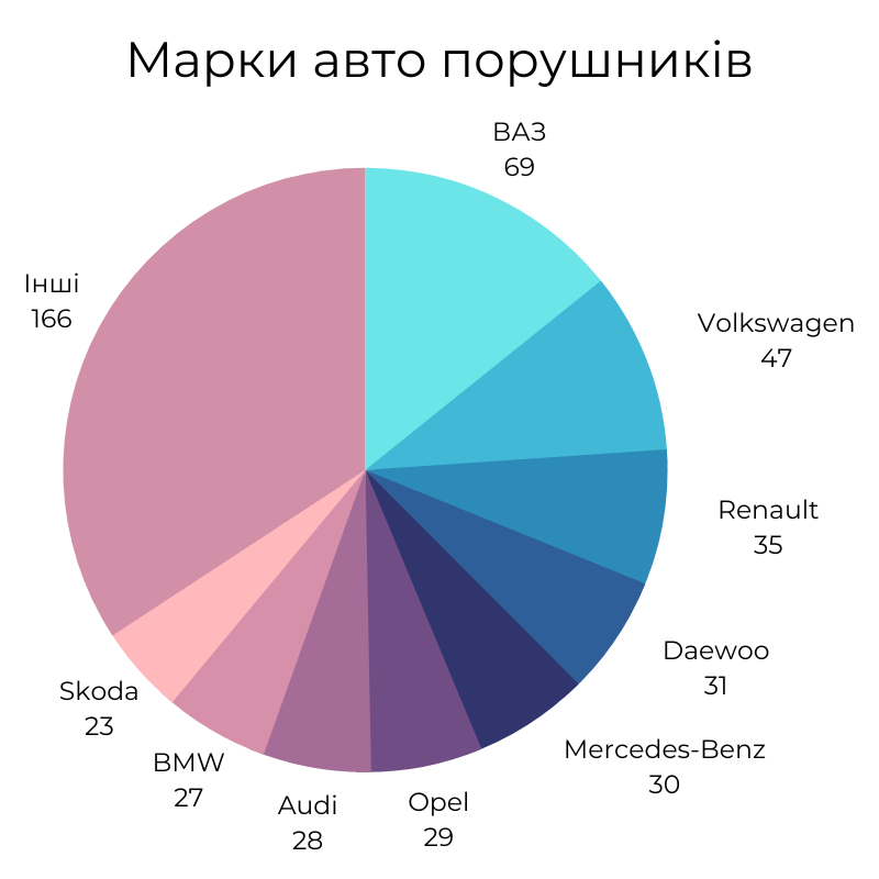 найчастіше порушники їздять на «ВАЗах», у трійці лідерів також «Volkswagen» та «Renault»