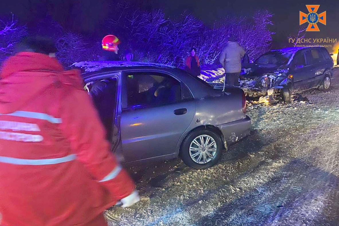 Спершу о 19:20 до Служби порятунку «101» повідомили, що на автодорозі поблизу села Копистин Хмельницького району зіткнулися дві автівки “Chevrolet Lanos” та “Ford Fusion”.