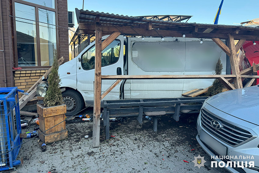 ДТП на Прибузькій: мікроавтобус в’їхав у терасу кав’ярні та автомагазин