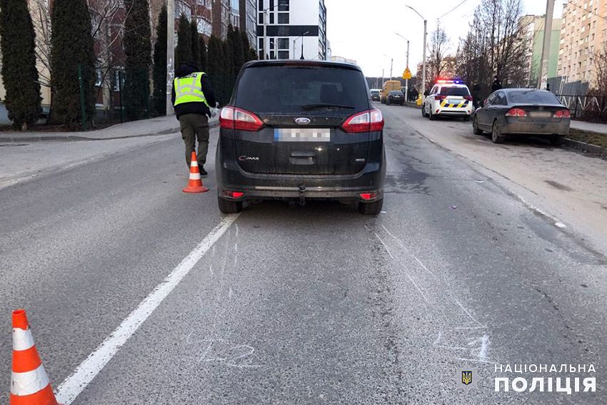Перша аварія трапилась в суботу, 6 січня, по вулиці Кармелюка. Близько 14:00 години автомобіль «Ford» наїхав на 9-річну дівчинку, яка переходила дорогу. Внаслідок ДТП дитина отримала травми. Її госпіталізували до медичного закладу. За кермом легковика був 35-річний водій.