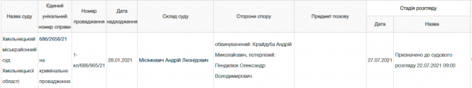 За кермом автомобіля був хмельничанин Андрій Крайдуба. Про це свідчать дані з Єдиного реєстру судових рішень, яке було оприлюднене 29 липня. У вироку Хмельницького міськрайонного суду від 22 липня йдеться, що Андрій Крайдуба є директором приватного підприємства «Сучасні технології безпеки». За інформацією сервісу YouControl, також він є одним із його засновників. Основною діяльністю підприємства Крайдуба є електромонтажні роботи, а також з десяток інших - торгівля, обслуговування і ремонти обладнання зв'язку.