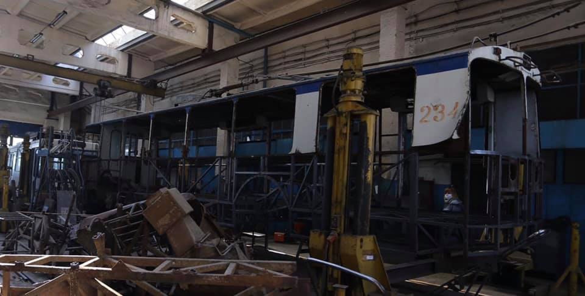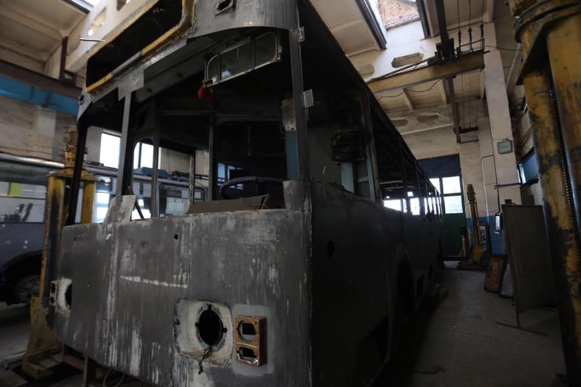 Гортайте фото. В галереї зображення вже оновленого тролейбуса і того, який ще ремонтується.