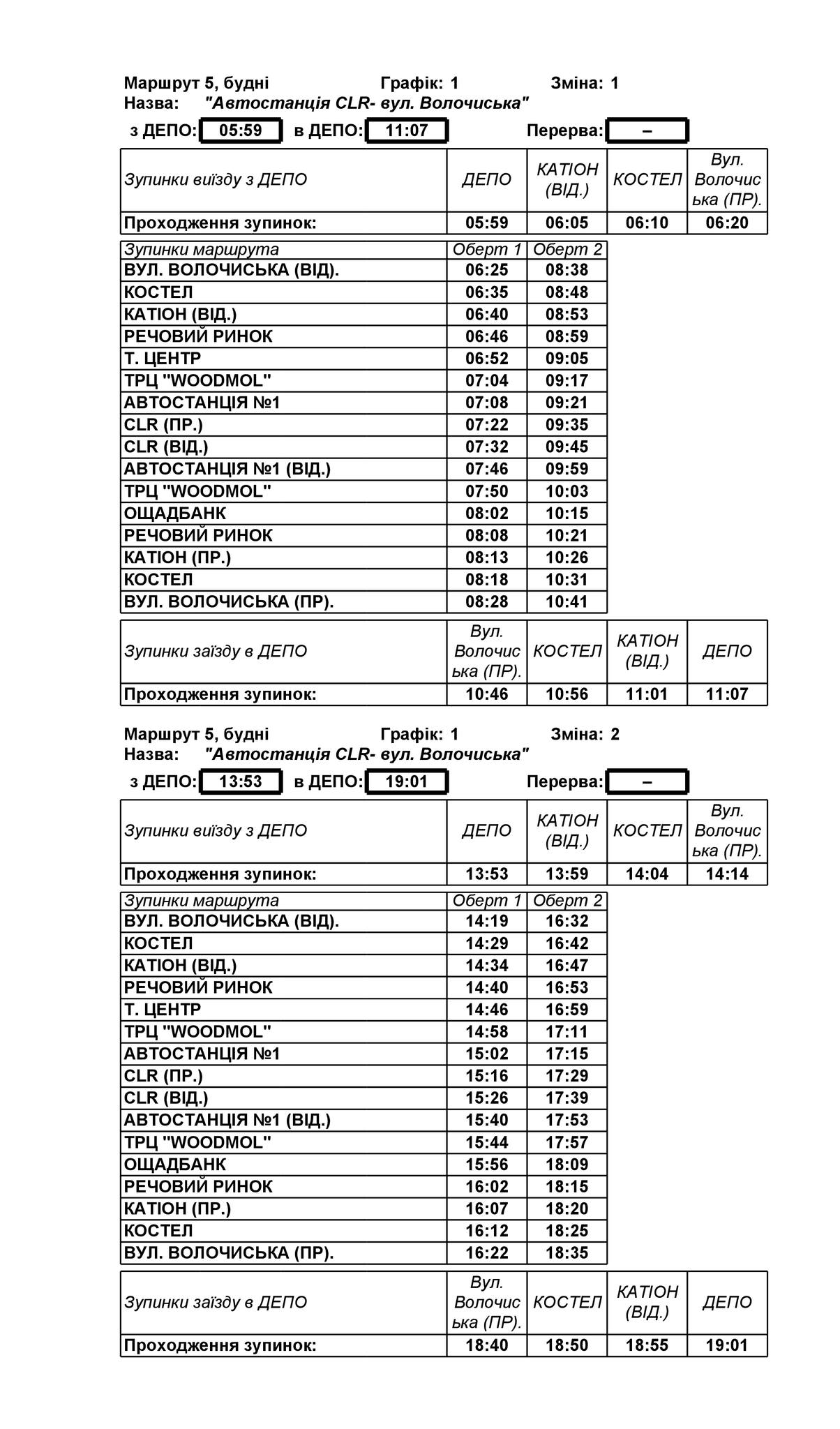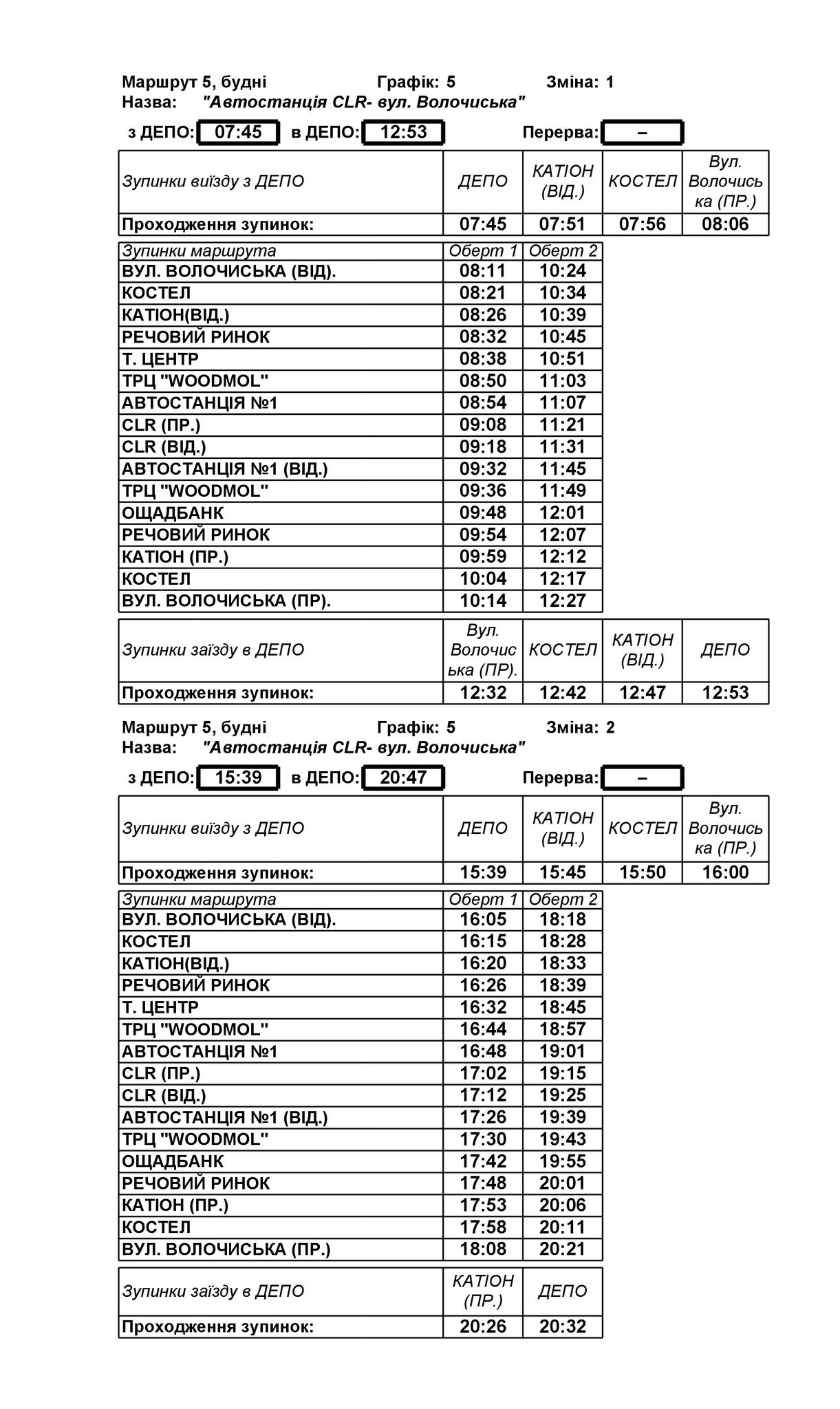 У Хмельницькому змінять роботу одного із маршрутів, про це повідомили у комунальному підприємстві «Електротранс». Зміни стосуються автобуса №5, який курсує від Автостанції KLR до вулиці Волочиської. Нові графіки почнуть діяти із 28 січня 2025 року. У підприємстві опублікували графіки роботи по змінах на будні та вихідні дні.