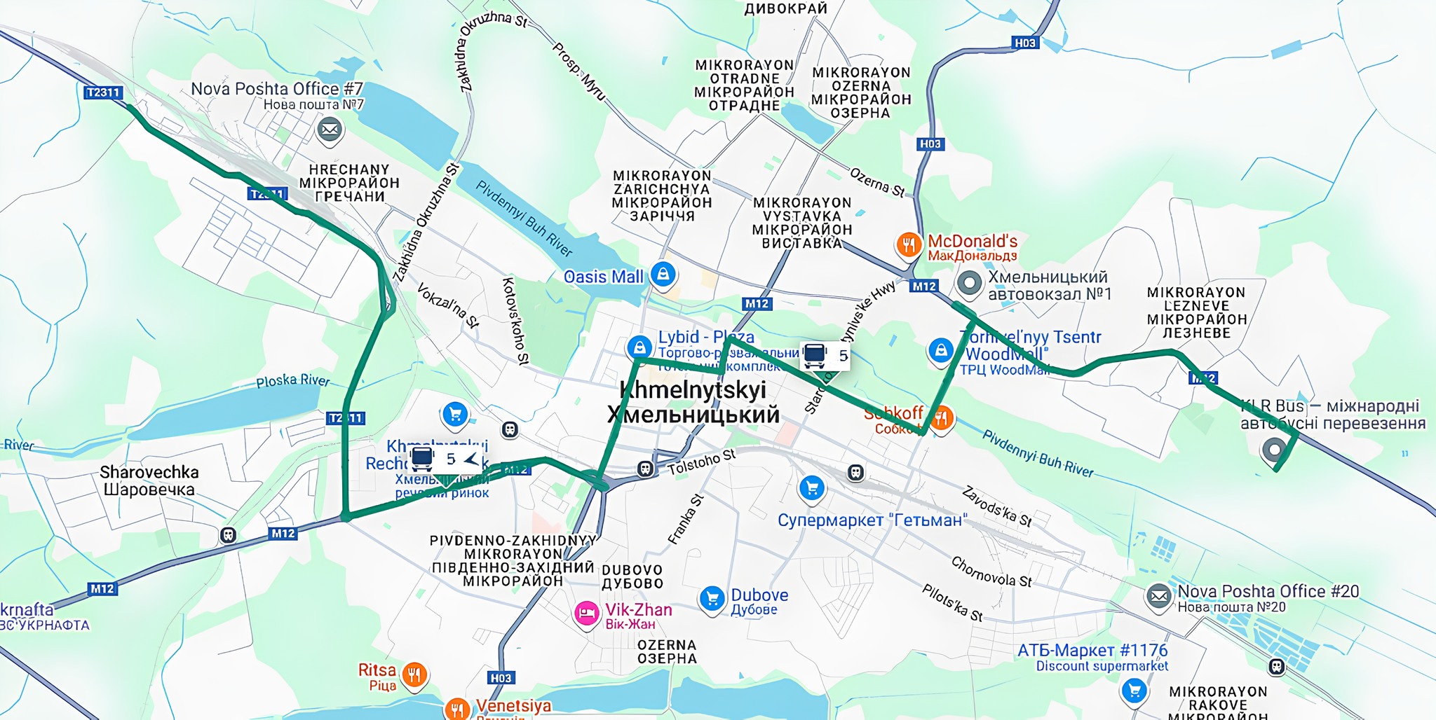 Нагадаємо, із 23 грудня 2024 року у Хмельницькому скасували маршрут 28А, який сполучав вулицю Північну із Автостанцією KLR. Великогабаритні автобуси перейшли на 46-й маршрут. Натомість в роботі автобусного сполучення №5 знесли зміни: його продовжили до вулиці Волочиської, а також додали дві транспортні одиниці. Також на цьому ж на маршруті №5 збільшили кількість автобусів: до чотирьох, які курсували, додали ще один автобус, і тепер на маршруті №5 курсують п’ять автобусів у робочі дні і два автобуси у вихідні дні. про це ми розповідали в окремому матеріалі.