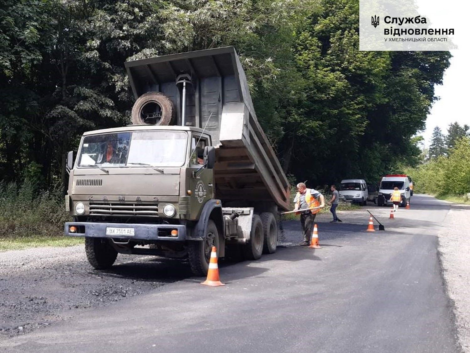 "Латають" ями та вибоїни. Як у Деражнянській тергромаді ремонтують дорогу (ФОТО)
