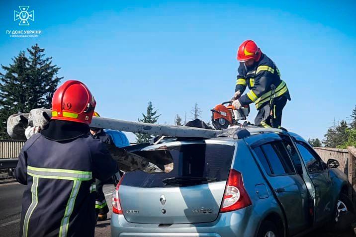 В управлінні з надзвичайних ситуацій повідомляють, що автівка “Renault Sandero” врізалася у відбійник. Металеві конструкції відбійника пробили обшивку, скло та дах машини.