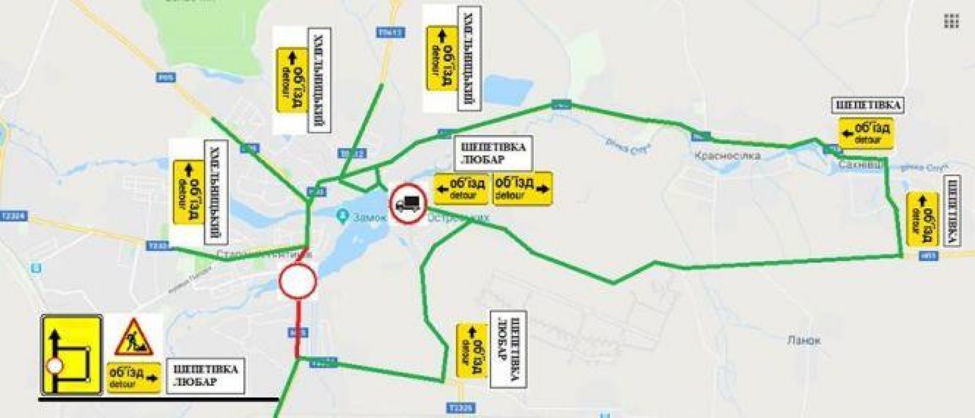 "У зв'язку із проведенням аварійних робіт із ліквідації пошкоджень мосту після ДТП через річку Случ на автодорозі Н-03 Житомир-Чернівці на 138 км у місті Старокостянтинів із 15 листопада 2018 року до 30 липня 2019 року планується повне закриття руху", - йдеться у повідомленні Служби автомобільних доріг Хмельницької області.