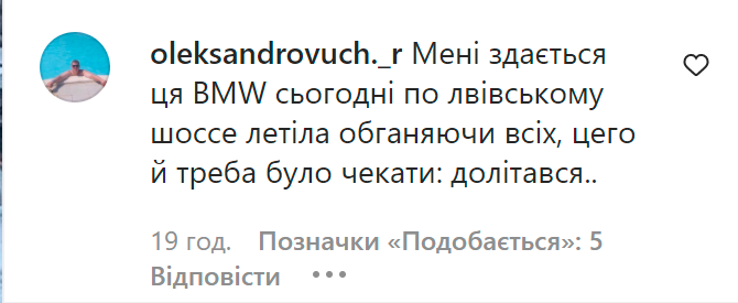 "Мені здається ця ВMW сьогодні по Львівському шосе летіла обганяючи всіх, цего й треба було чекати: долітався., - написав користувач oleksandrovuch._r.