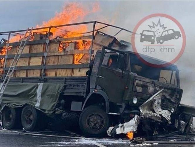 Відомо, що автомобілем "КамАЗ" керував 39-річний житель Львова. Внаслідок аварії транспортні засоби загорілись. Водій та пасажир військової вантажівки не травмувались.