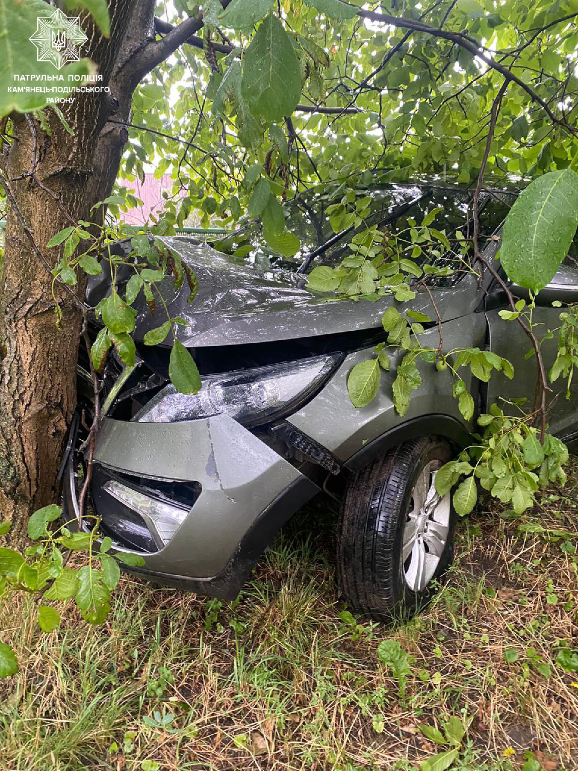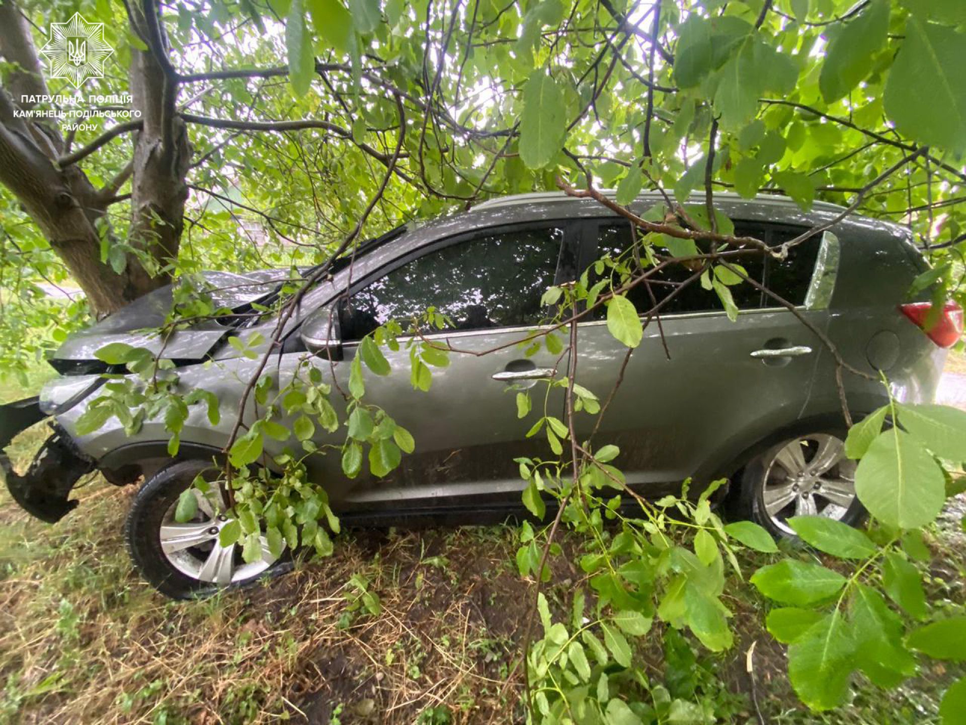 За інформацією правоохоронців, інспектори під час патрулювання Кам' янеччини виявили автомобіль Kia Sportage, який перебував за межами проїзної частини. Автомобіль виїхав з дороги та зіткнувся з деревом.