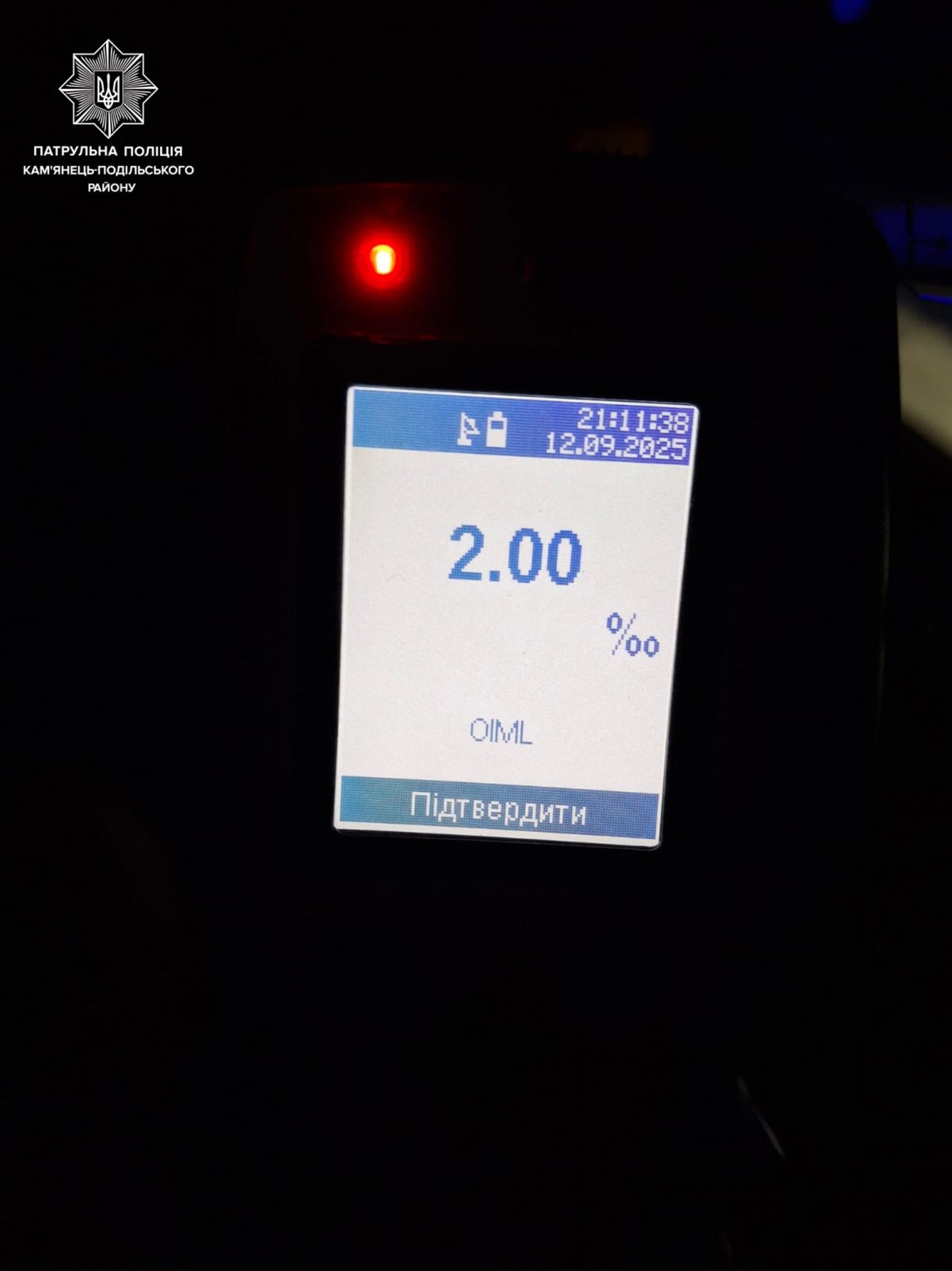 Патрульні прибули на місце події. Під час спілкування з керманичем правоохоронці помітили в нього явні ознаки сп’яніння. Огляд за допомогою приладу «Драгер» підтвердив підозри. У крові водія виявили 2,00‰ алкоголю. Результат у 10 разів перевищує допустиму норму.