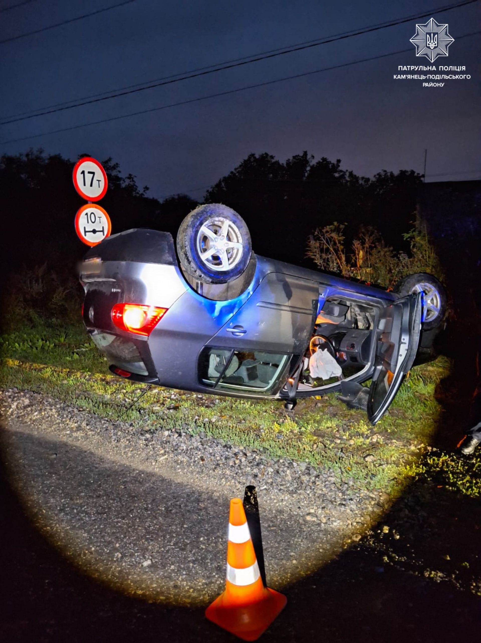 На Кам’янеччині п’яний водій не впорався з керуванням і перекинув автомобіль.