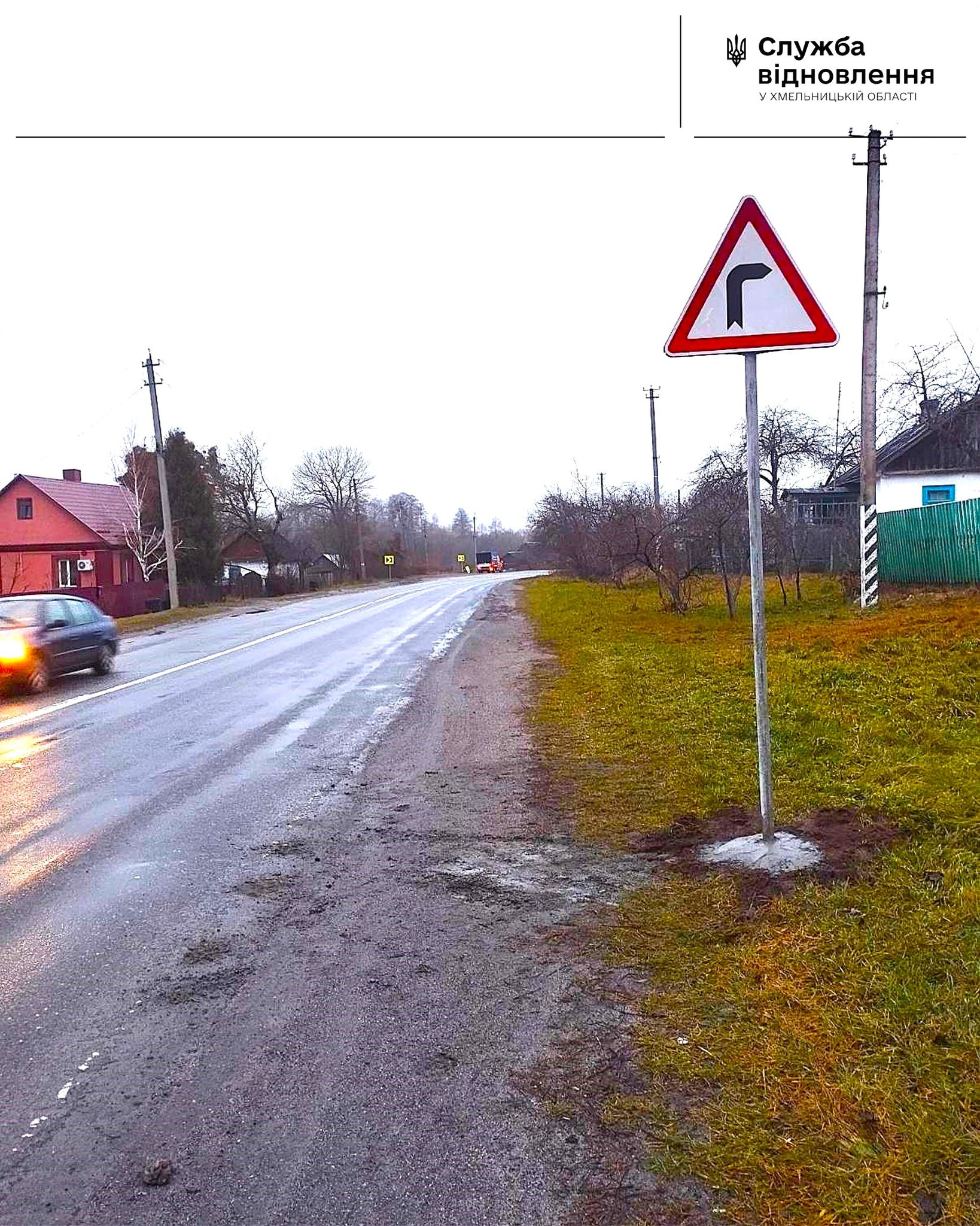 Аби зменшити ризик дорожньо-транспортних пригод підрядники встановили нові знаки. Йдеться про такі ділянки автодоріг: H-25 Городище - Рівне - Старокостянтинів, в населеному пункті Старий Кривин, Н-03 Житомир-Чернівці (колова розв'язка біля міста Дунаївці). Там з’явились заборонні - "Обмеження максимальної швидкості", попереджувальні "Напрямок повороту", "Небезпечний поворот праворуч", "Небезпечний поворот ліворуч" знаки.