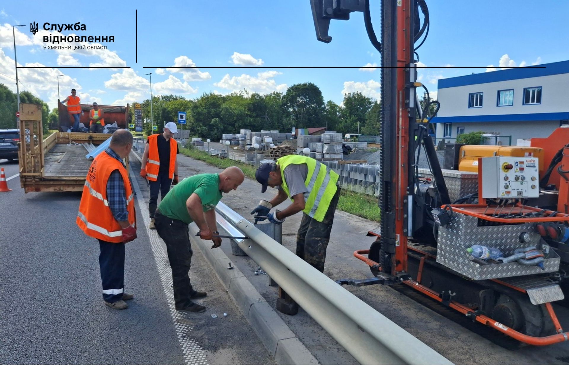 Паралельно з цим, на ділянці дороги М-30 в місті Летичів відновлюють металеве бар’єрне огородження, що було пошкоджене внаслідок дорожньо-транспортних пригод.