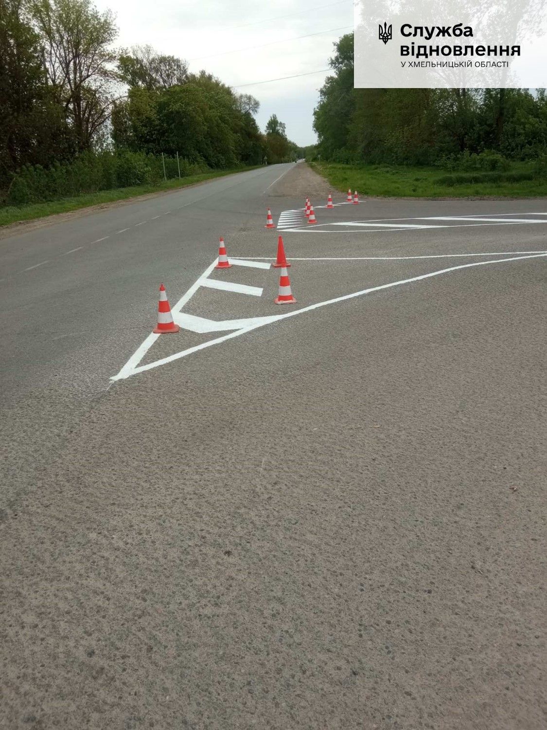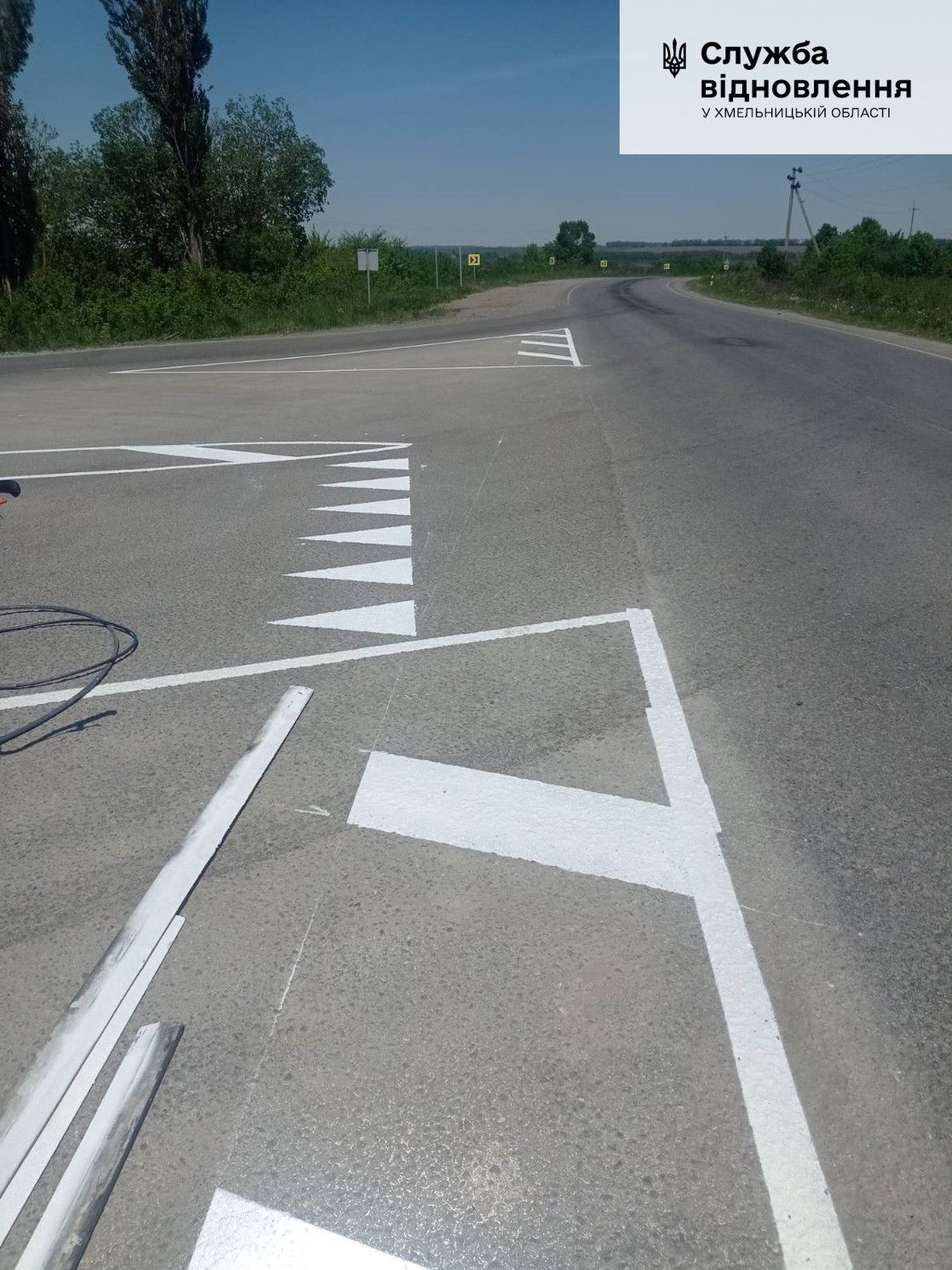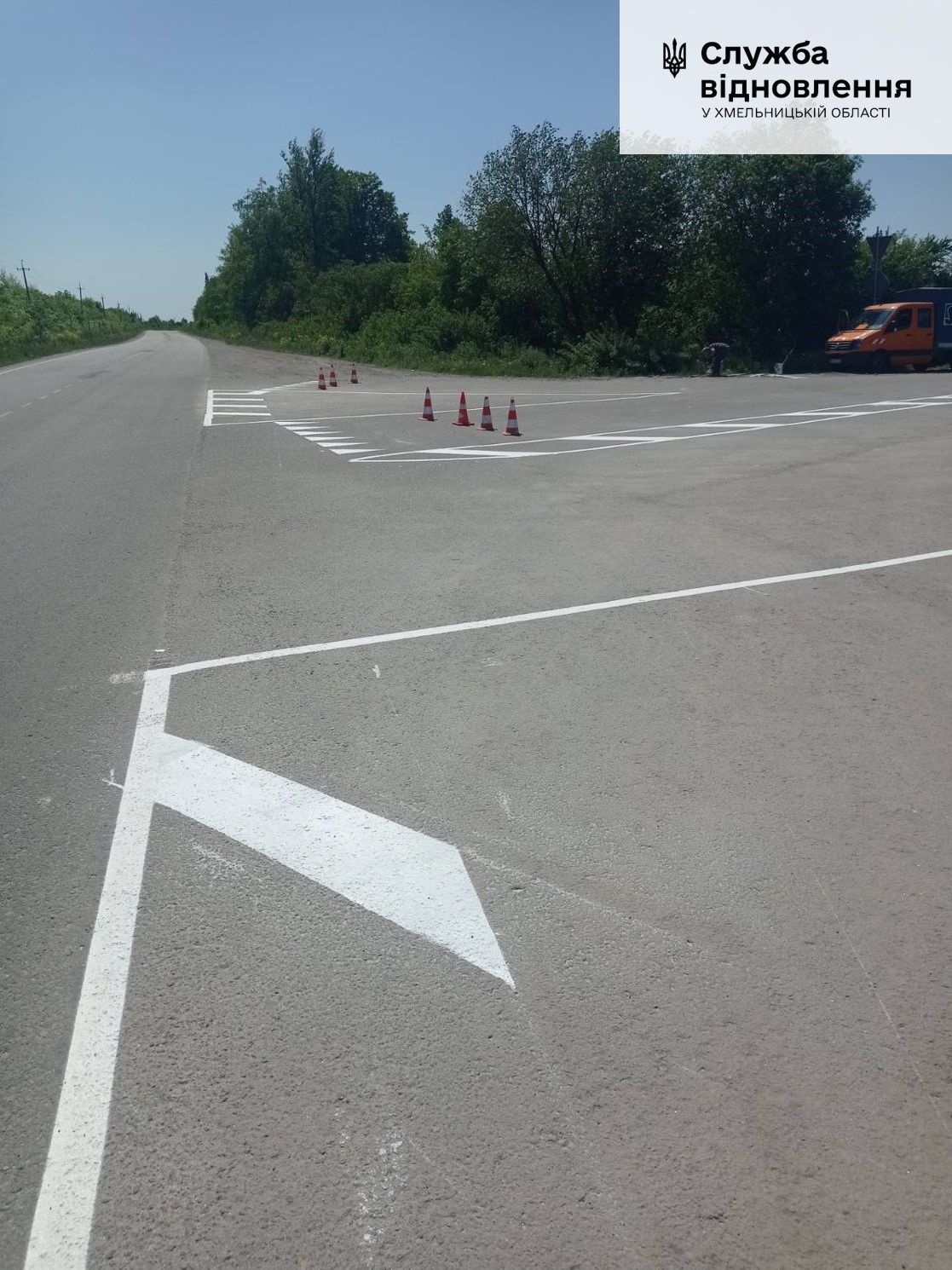 Також оновлюють розмітку по трасі Хмельницький — Волочиськ. Протягом минулого тижня дорожники нанесли свіже осьове маркування, розмітку пішохідних переходів та примикань.