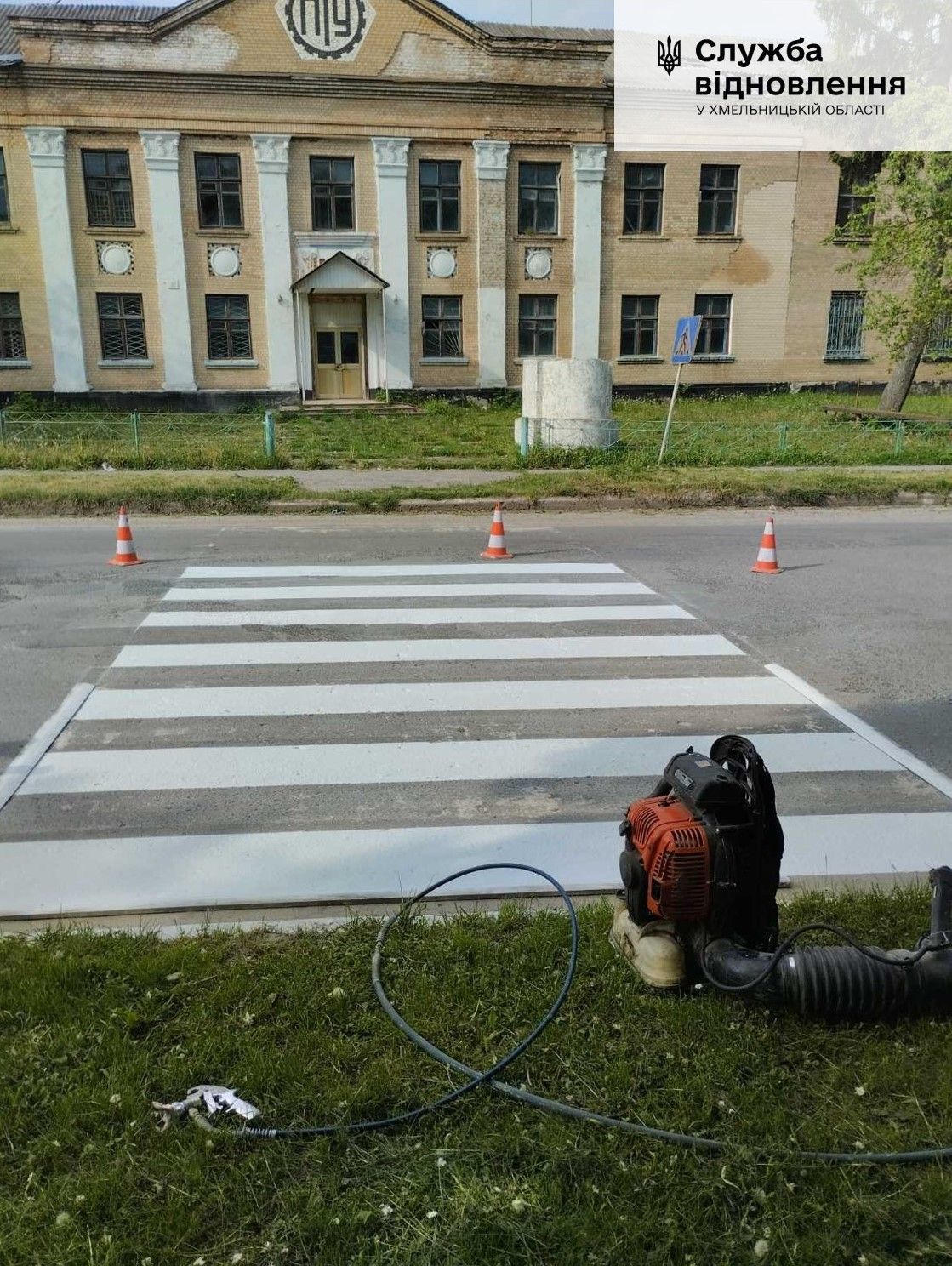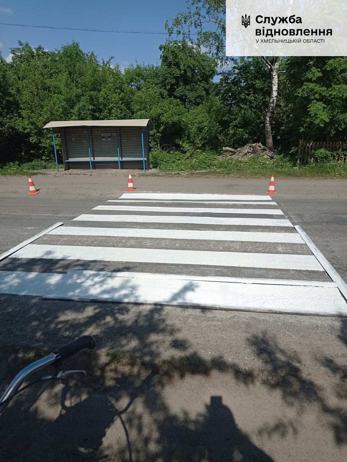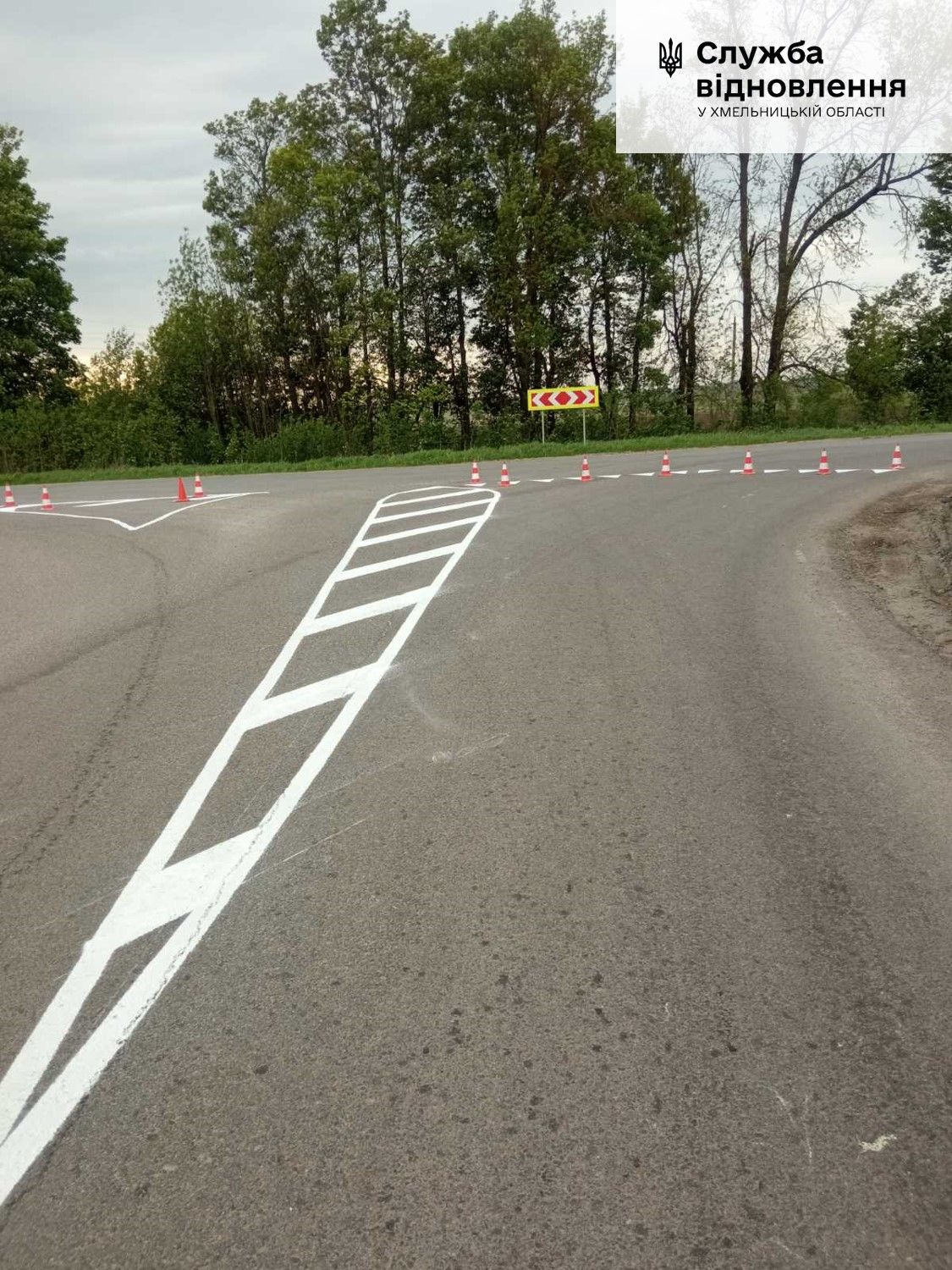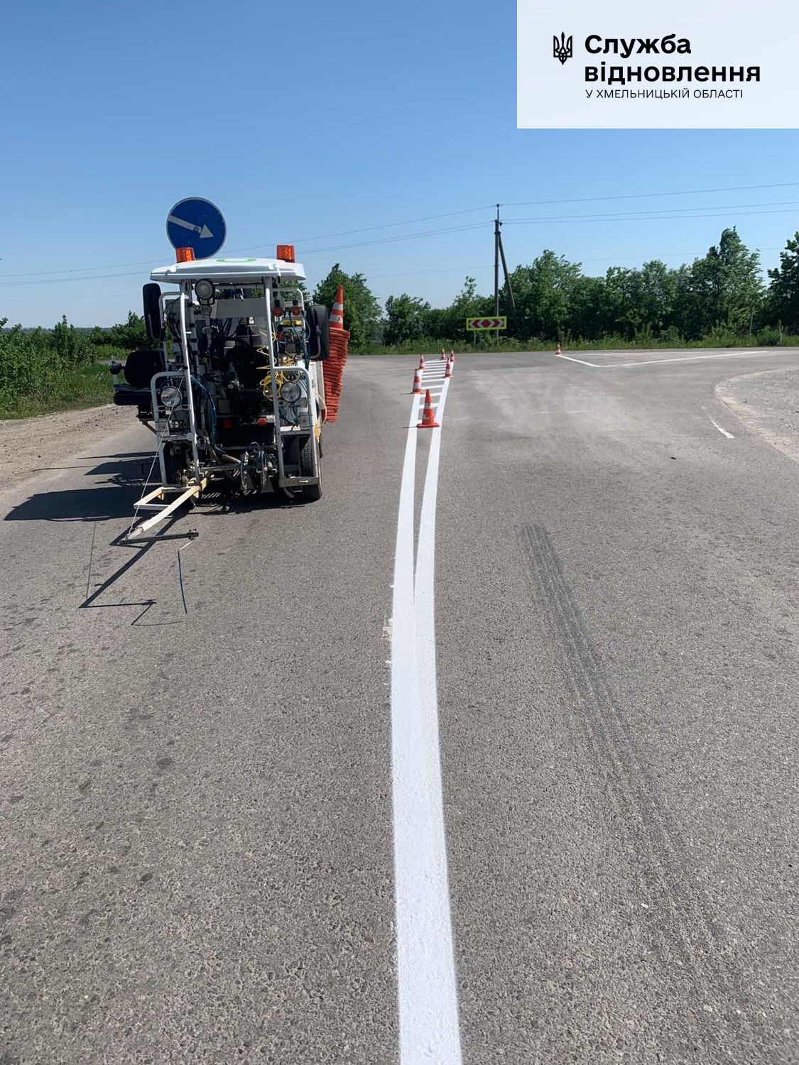 Також оновлюють розмітку по трасі Хмельницький — Волочиськ. Протягом минулого тижня дорожники нанесли свіже осьове маркування, розмітку пішохідних переходів та примикань.