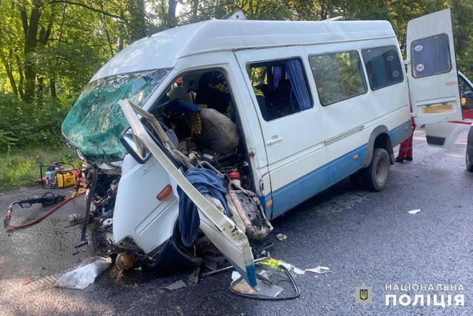 Внаслідок ДТП водій “Renault” загинув на місці. Водія мікроавтобуса і 20 його пасажирів госпіталізували. У них травми різного ступеня важкості. На місці події працює поліція та надзвичайники.
