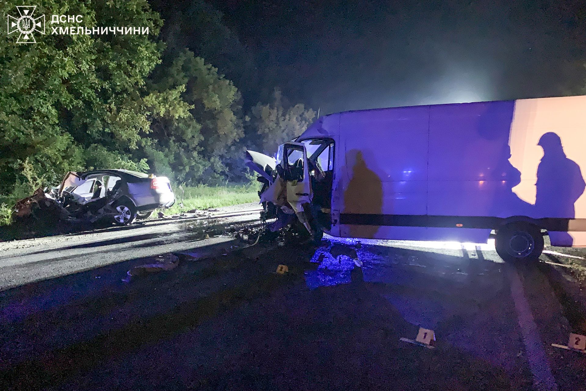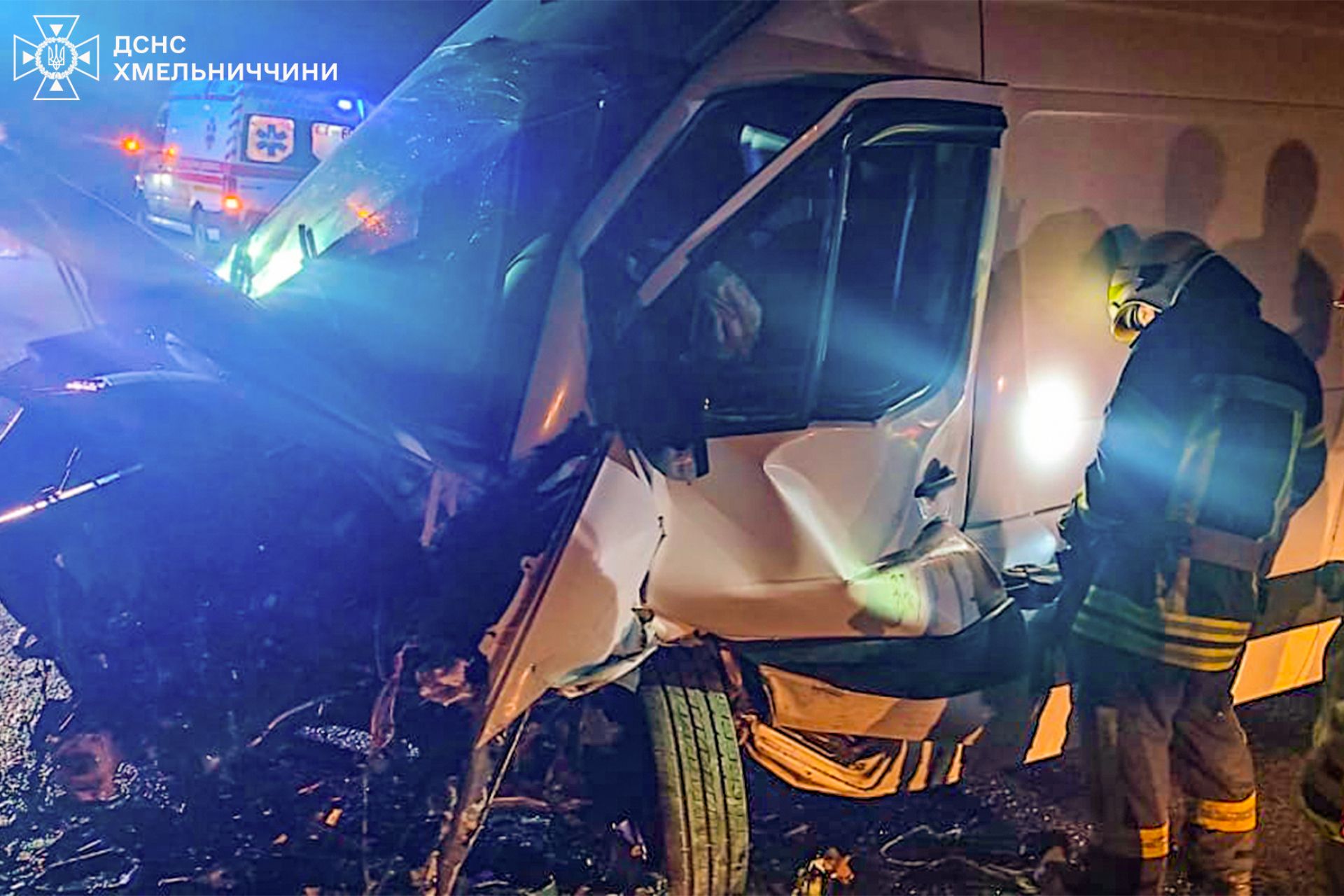 За даними надзвичайників, виклик на пункт служби порятунку надійшов о 02:13 ночі. ДТП сталася поблизу населеного пункту Пільний Мукарів, що входить до складу Дунаєвецької територіальної громади. Зіткнулися мікроавтобус Mercedes-Benz Sprinter та легковик Skoda Octavia. Удар був настільки сильним, що у салоні легковика Skoda між елементами конструкції затисло 44-річного водія.