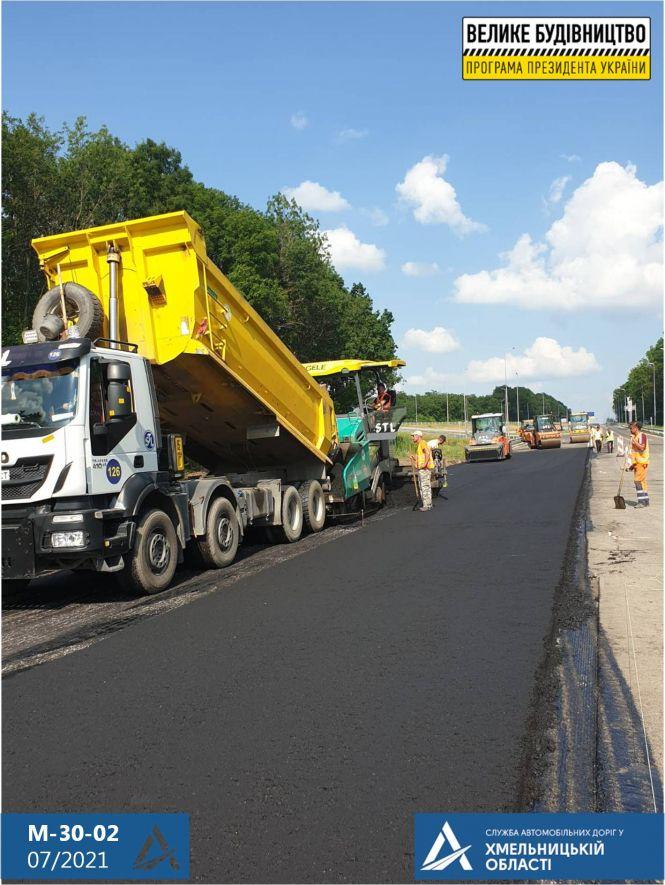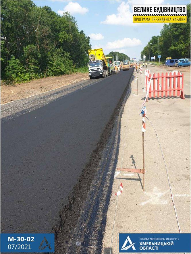 В рамках "Великого будівництва" ремонтують ділянку на підході до хмельницького аеропорту, яка є яка є частиною "Дороги Єдності" М-30 Стрий - Умань - Дніпро – Ізварине. Зараз там триває поточний середній ремонт. Станом на вчора, 9 липня, дорожники працювали над влаштуванням вирівнюючого шару покриття по правому проїзду. Про це інформують у Службі автомобільних доріг Хмельницької області.