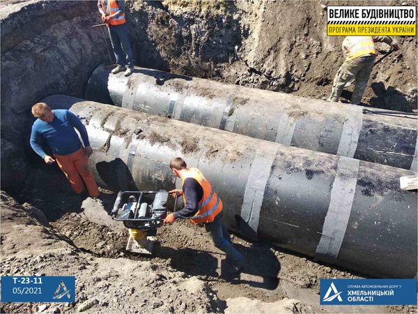 - на ділянці км 29 +300-38 +750 , на км 30 +250, відбувається влаштування правої частини двоточкової труби;