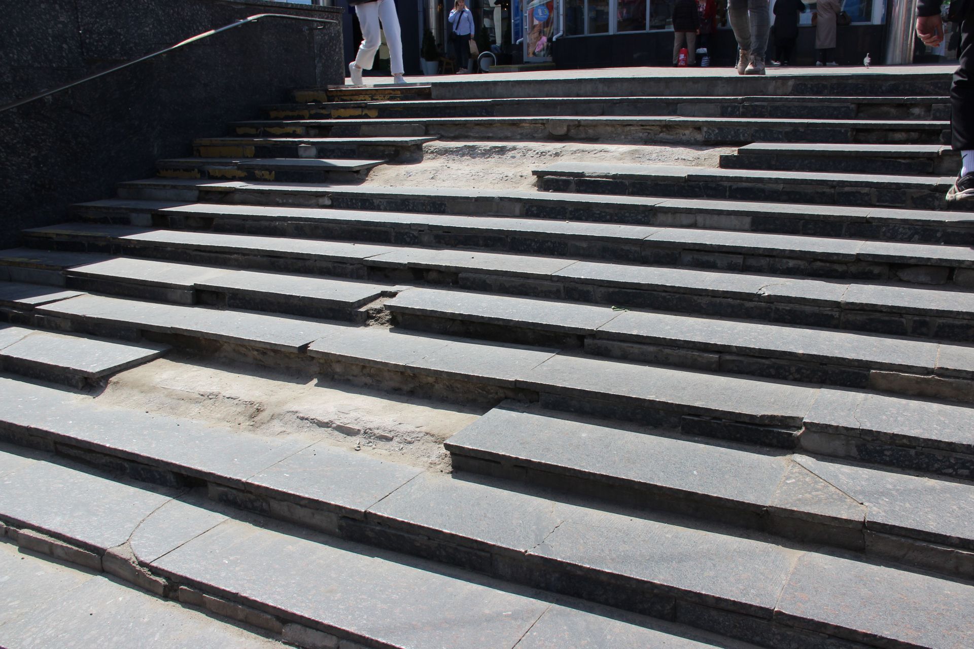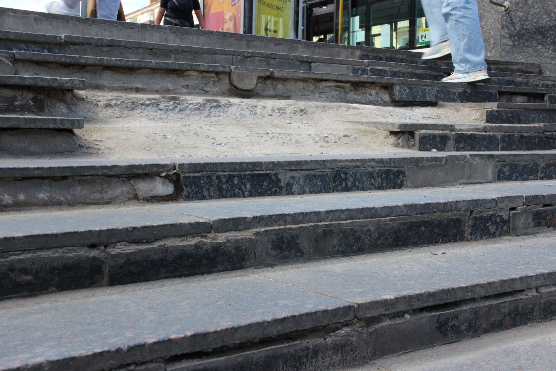 Також виконали облицювання сходів з гранітних плит, провели штукатурення східців та присхідців цементним розчином, замінили пошкоджені гранітні плити.