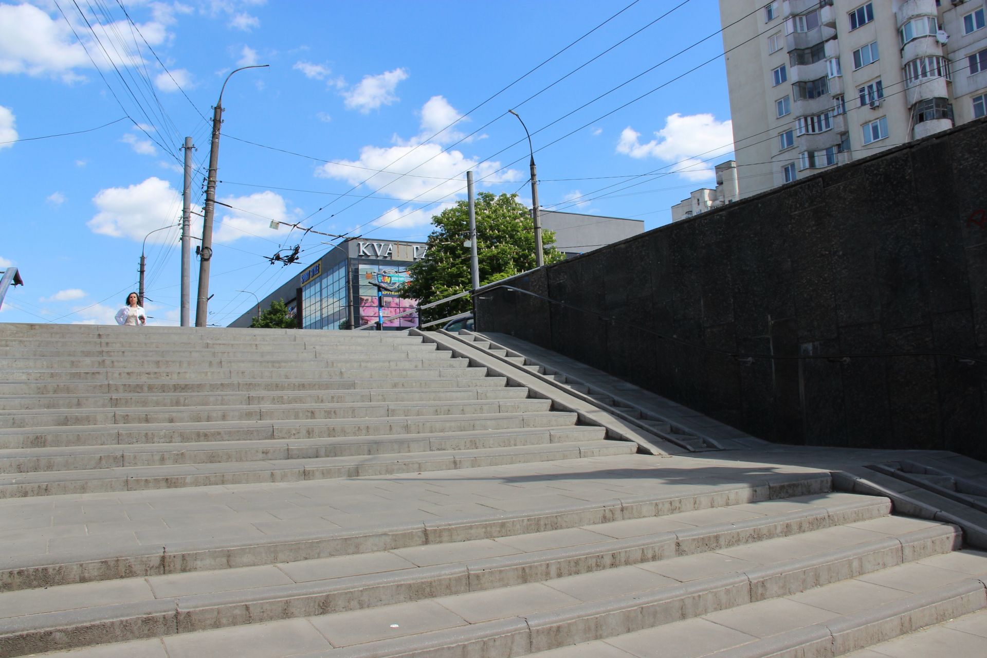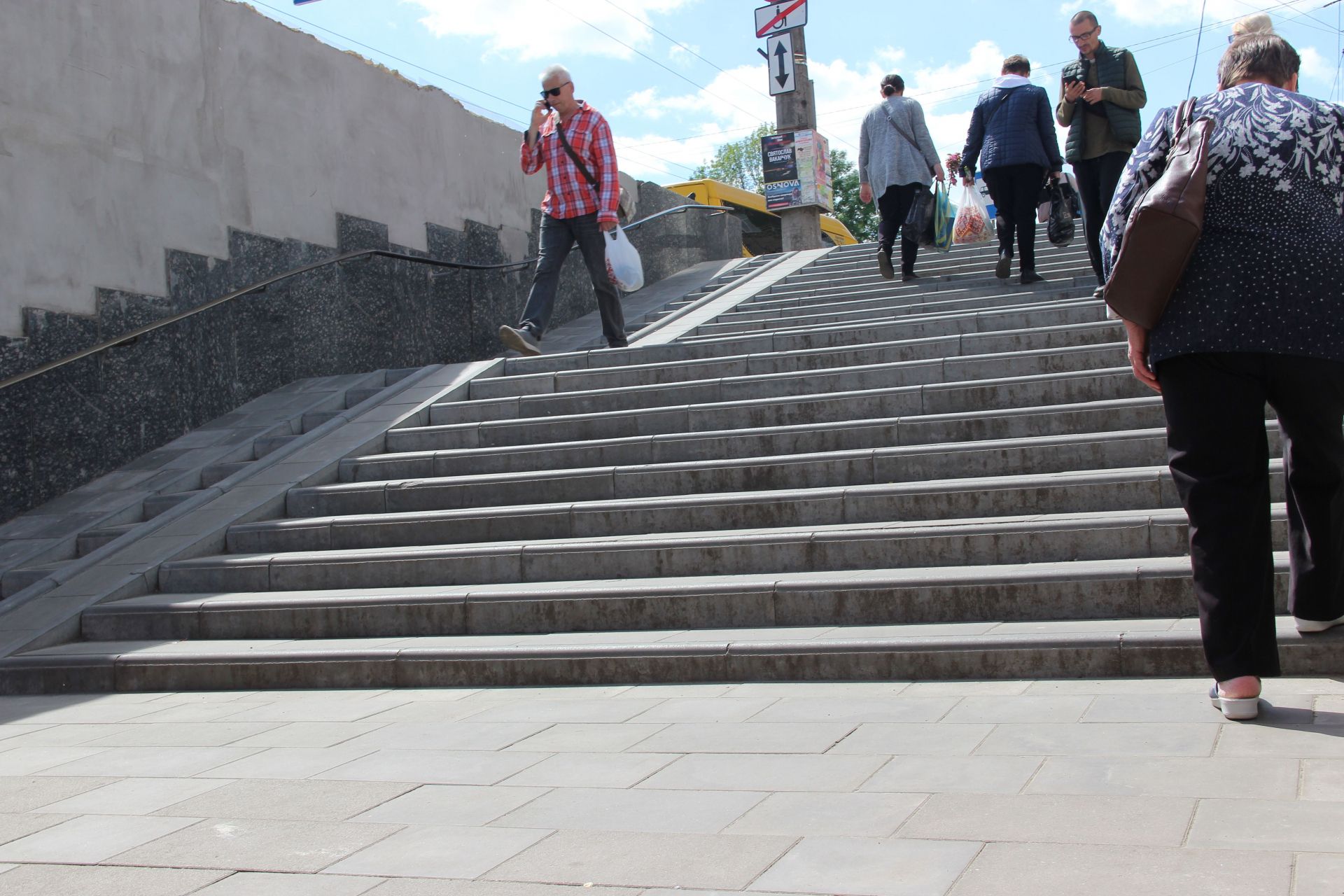 Досі в аварійному стані сходи з виходом на зупинку «Либідь Плаза», а також до Дитячого світу. Якісь сходинки тріснули, частини взагалі немає.