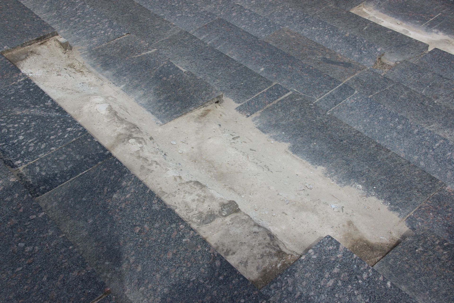 Перевлаштування сходів з гранітних плит на бруківку з улаштуванням пандуса.