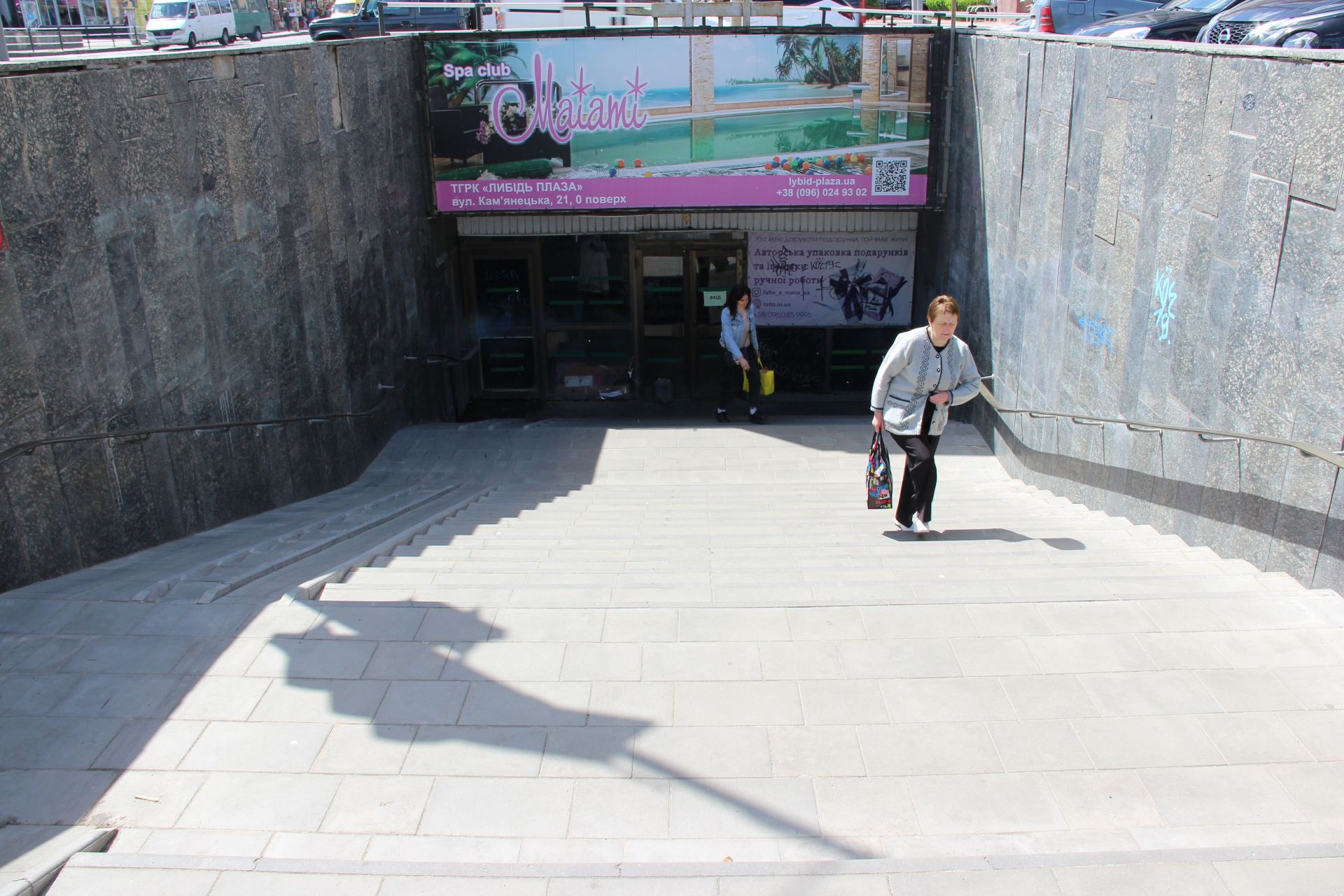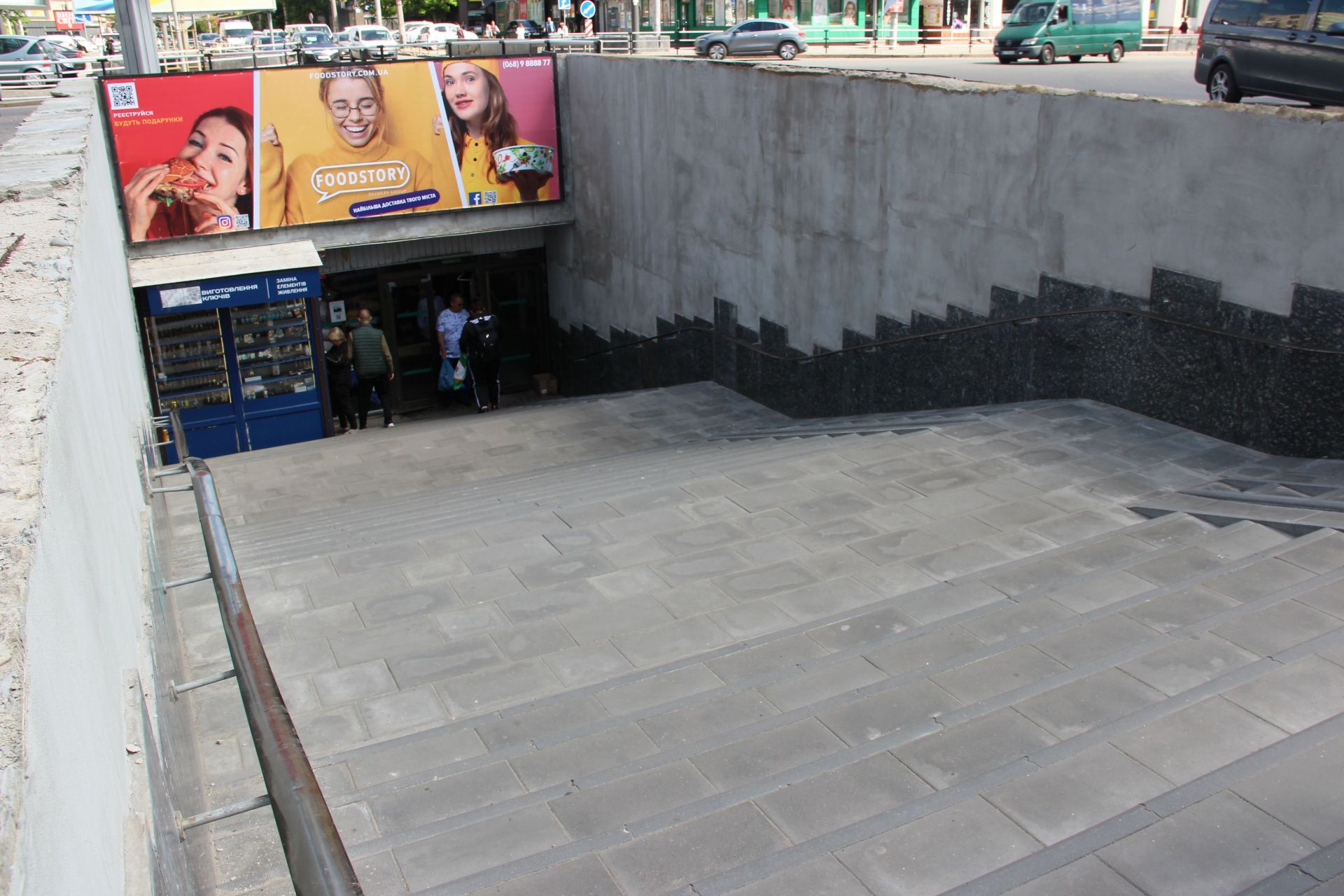 Такі ж роботи провели й на виході із підземного переходу до «Ощадбанку». Додатково зробили й поточний ремонт стін, а саме: облицювання стін з гранітних плит та шпаклювання стін фасадів мінеральною шпаклівкою. Замінили вітринне скло. У 2023-му на ці два виходи з «підземки» з міського бюджету витратили 783 478 гривень. Та, здається, роботи біля «Ощадбанку» ще не завершені.