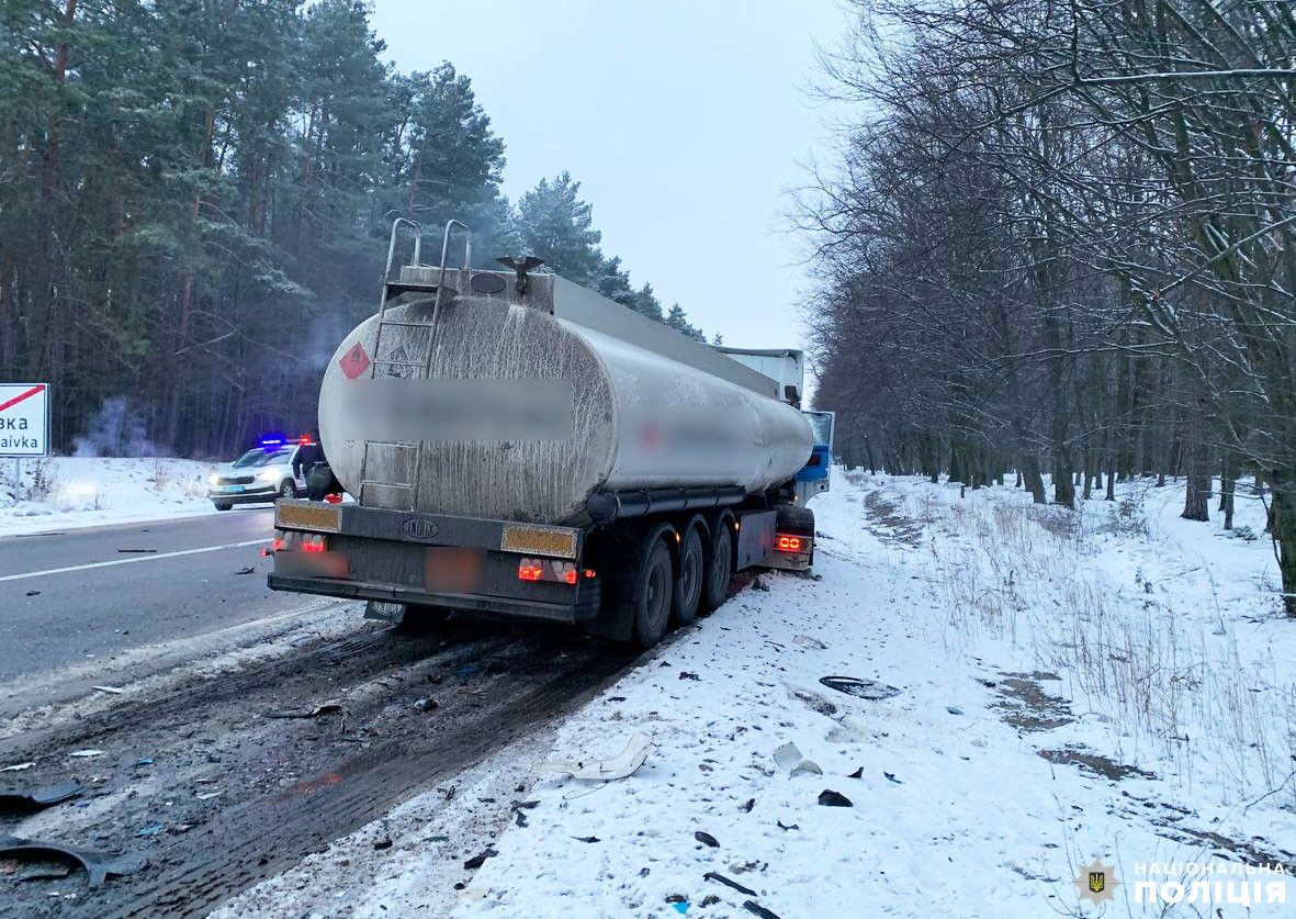 Автокатастрофа трапилась на трасі «Доманове-Ковель-Чернівці-Тереблече» у Рівненській області. У п’ятницю, 19 січня, на виїзді з села Стара Миколаївка Дубенського району, о 17:45 не розминулися легковик та автоцистерна.