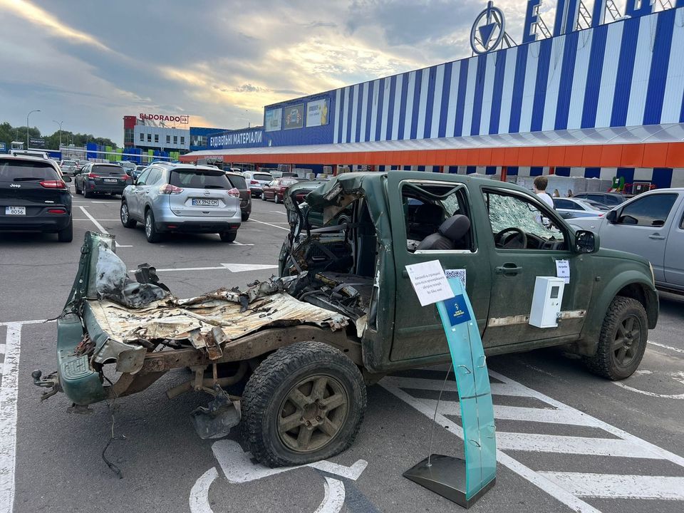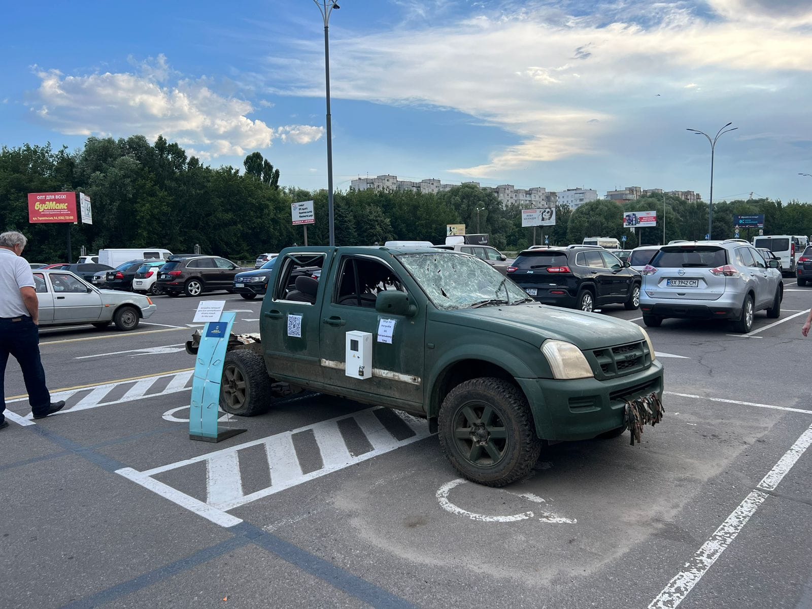Тероборонівці виставили побитий у боях пікап біля “Епіцентру” і збирають на ЗСУ