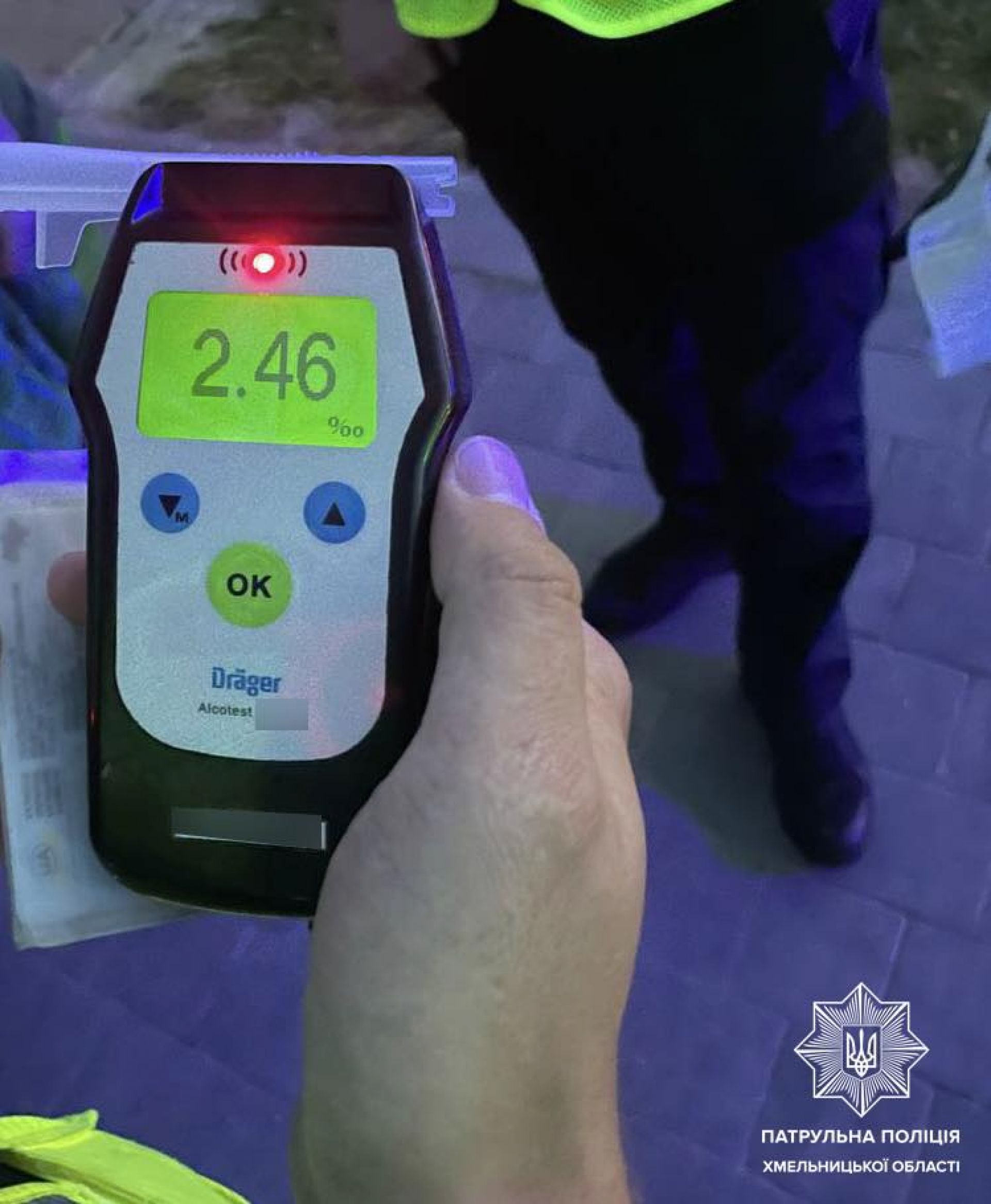 У Хмельницькому патрульні задокументували водія, який їздив нетверезим вулицями міста. Норма алкоголю в його крові була перевищена у 12 разів. Про це повідомили у пресслужбі Патрульної поліції.