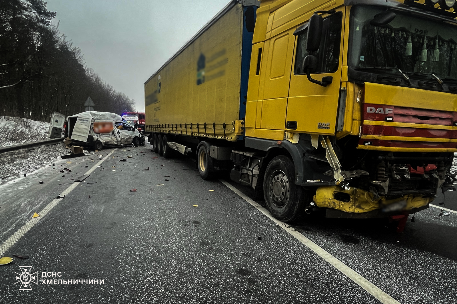 Дорожньо-транспортна пригода сталався у Хмельницькому районі у середу, 4 лютого. А саме – біля села Подільське у Летичівській громаді. Там зіткнулися мікроавтобус Renault Trafic і вантажівка DAF. Про це повідомляють в ГУ ДСНС України в Хмельницькій області.