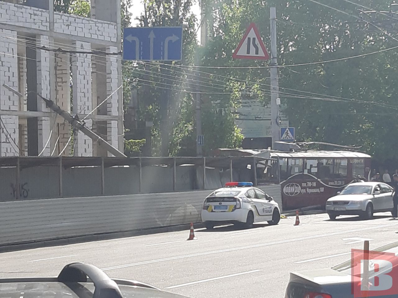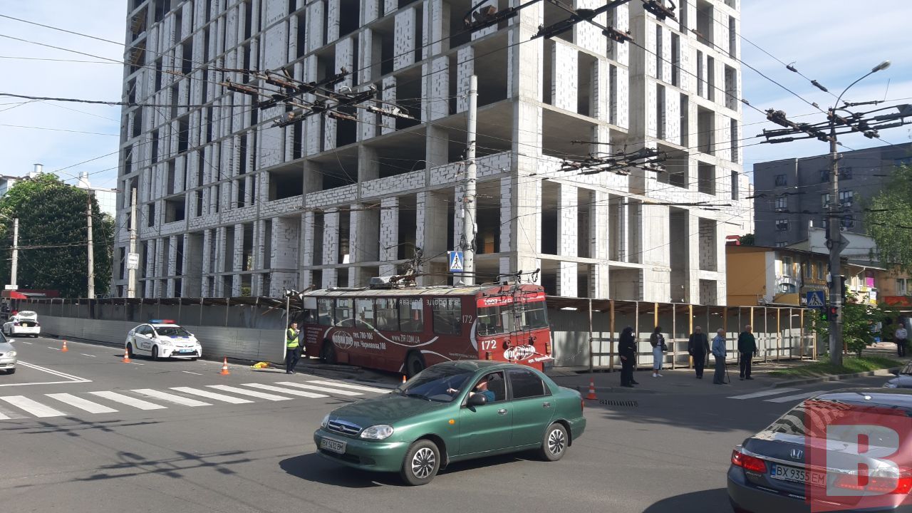 На перехресті Шевченка та Старокостянтинівського шосе сталася аварія за участі тролейбуса. Транспортний засіб із бортовим номером 172 рухався за маршрутом №14. За кермом був 38-річний водій. Він їхав зі сторони залізничного вокзалу. Після того, як він рушив на зелений сигнал світлофора на перехресті, тролейбус в'їхав у тротуар, який обгороджений парканом, поряд із будівельним майданчиком.