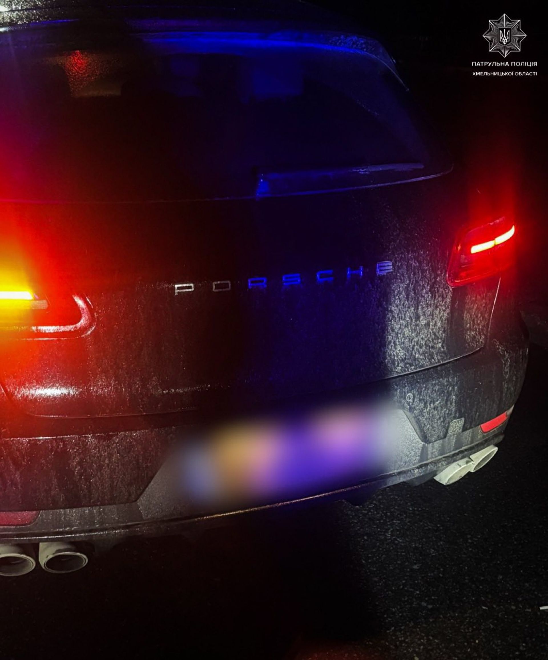 У Хмельницькому під час комендантської години патрульні зупинили автомобіль Porsche. У водія виявили ознаки алкогольного сп’яніння, а під час оформлення матеріалів він намагався запропонувати поліцейським хабар.