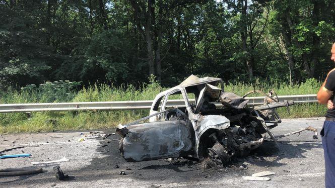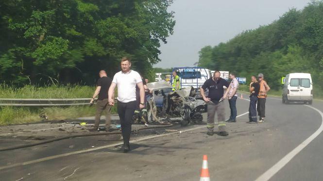 На місці події працюють правоохоронці, медики і рятувальники. За інформацією журналістів vsim.ua, загинув один водій. Він згорів у легковому автомобілі.