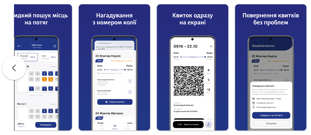 Пасажири зможуть оплатити квитки безпосередньо в мобільному застосунку цифровою карткою за допомогою Apple Pay, Google Pay, або ж можна ввести дані банківської картки та зберегти їх у застосунку для оплат.