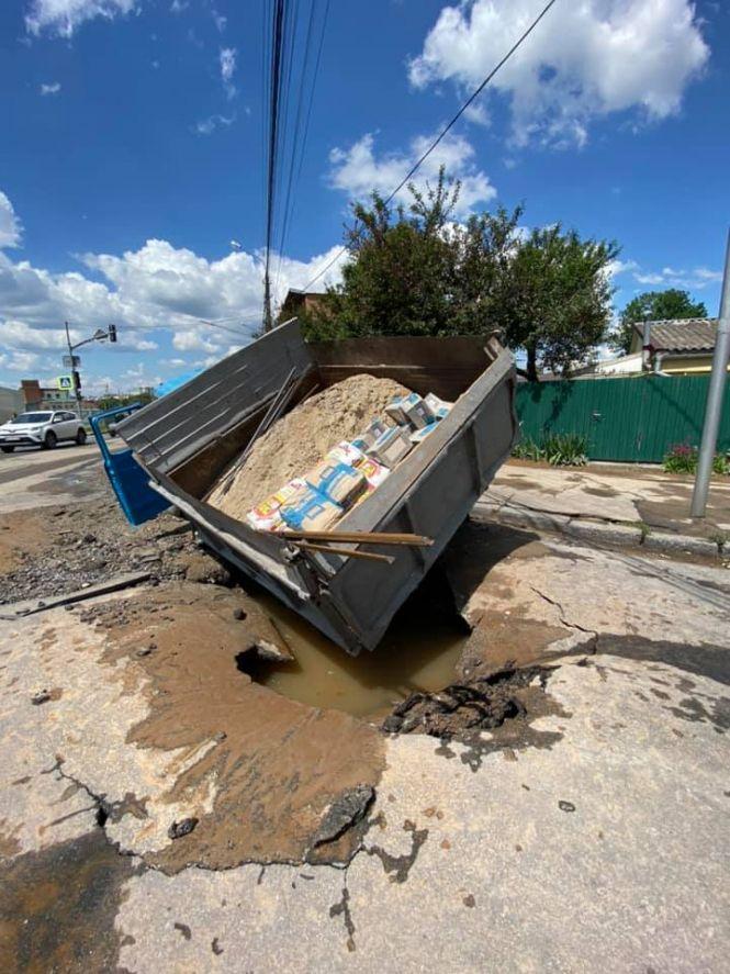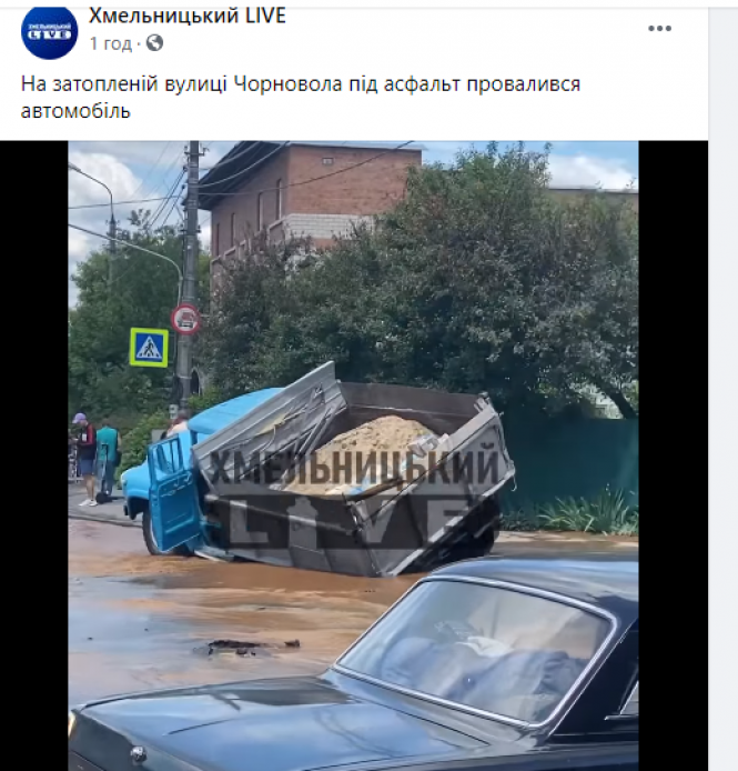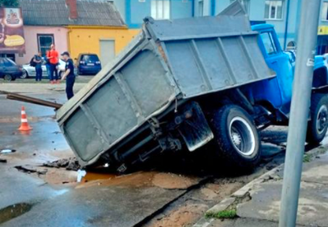 Однак, уже близько 13:15 на лінію "102" надійшов виклик, що на цьому ж відрізку дороги під вантажівкою ЗІЛ провалився асфальт. Про це розповіла інспектор Управління патрульної поліції Хмельницької області Роксолана Вавренюк.